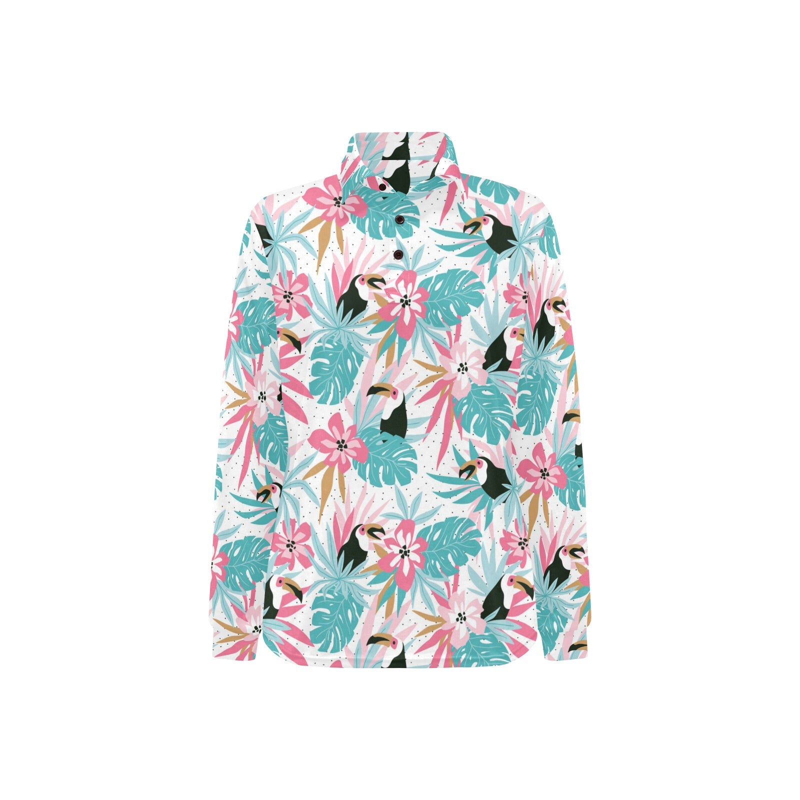 Toucan tropical flower leave pattern Women's Long Sleeve Polo Shirt