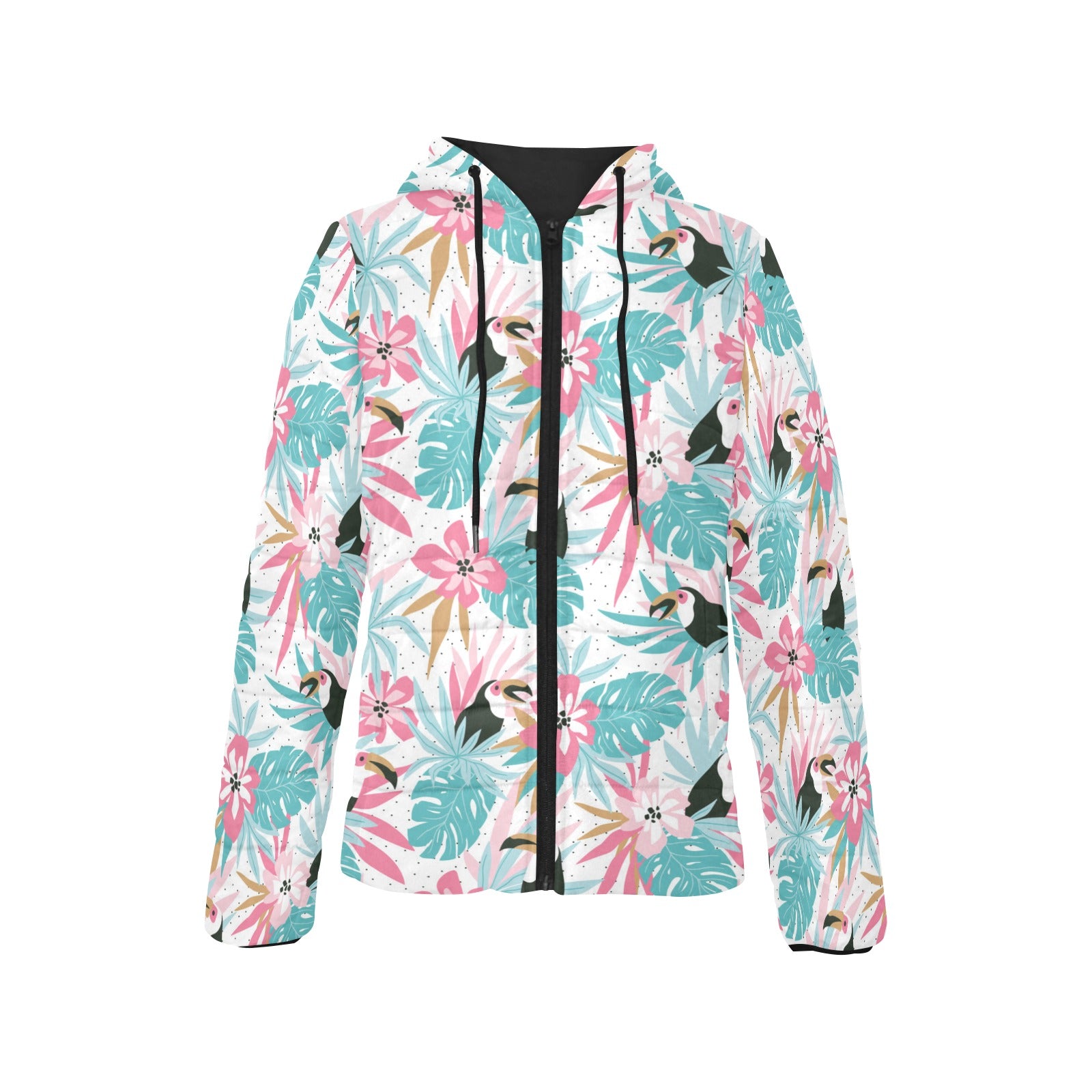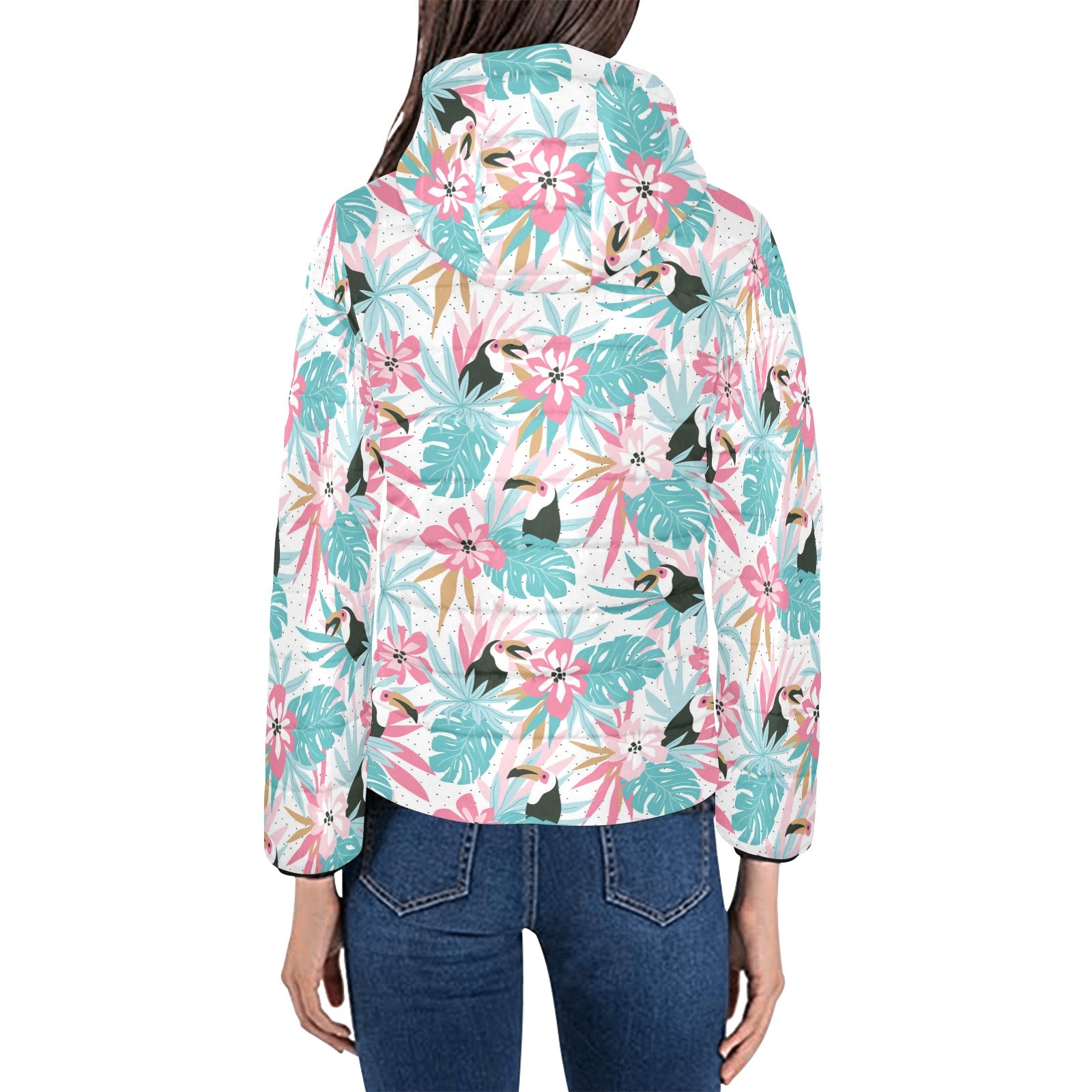 Toucan tropical flower leave pattern Women's Padded Hooded Jacket
