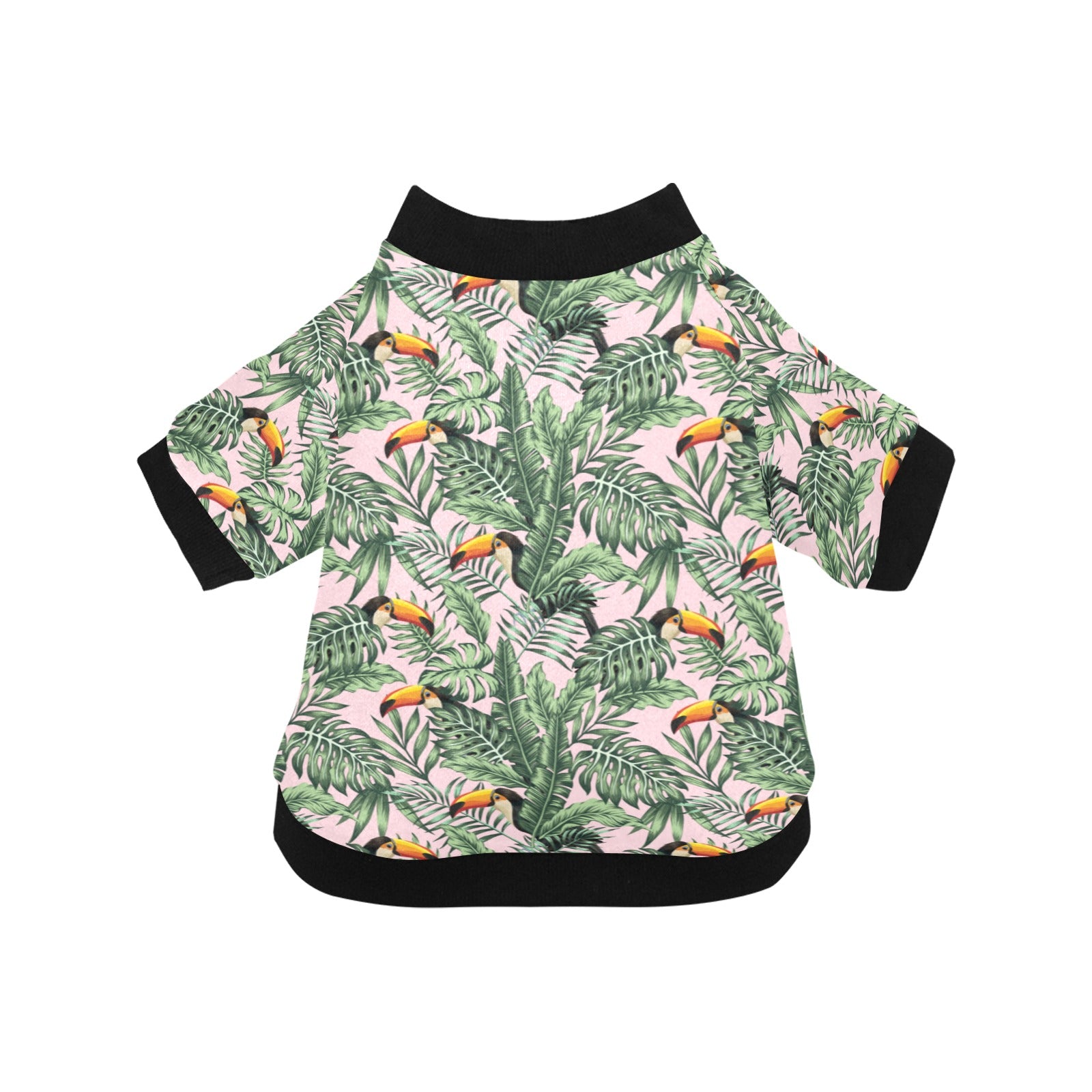 Toucan tropical green jungle palm pattern All Over Print Pet Dog Round Neck Fuzzy Shirt