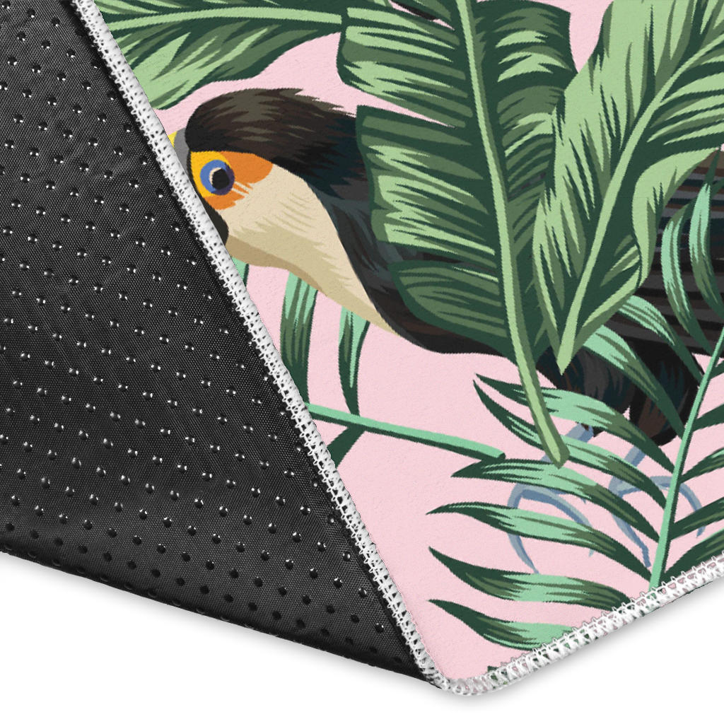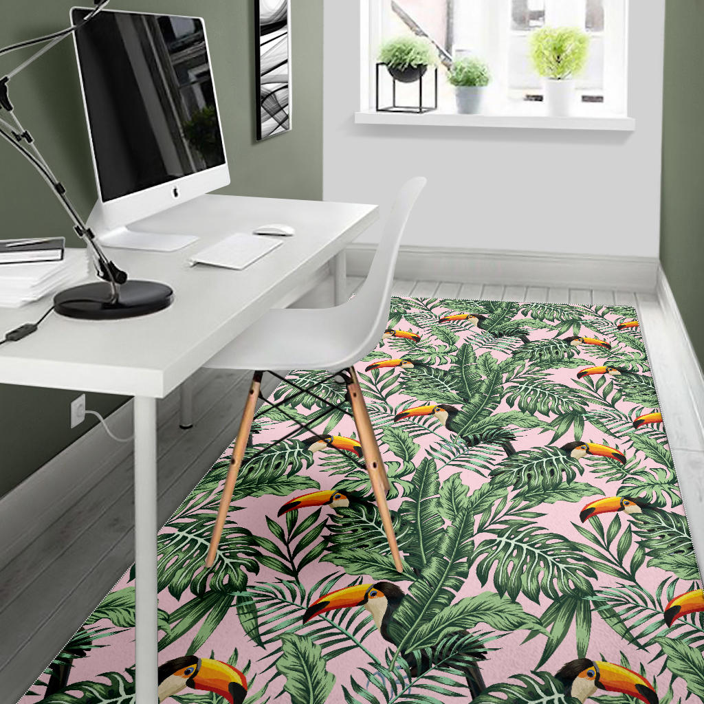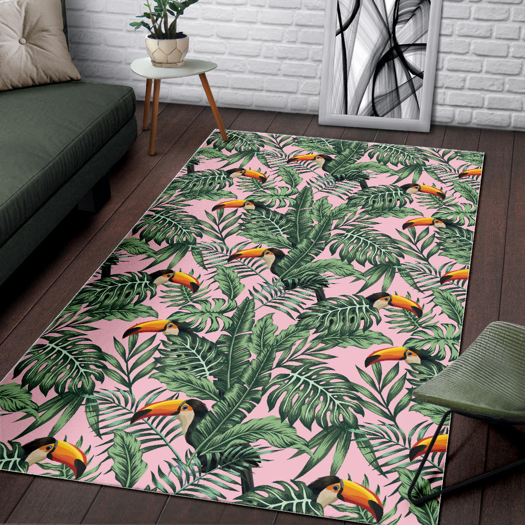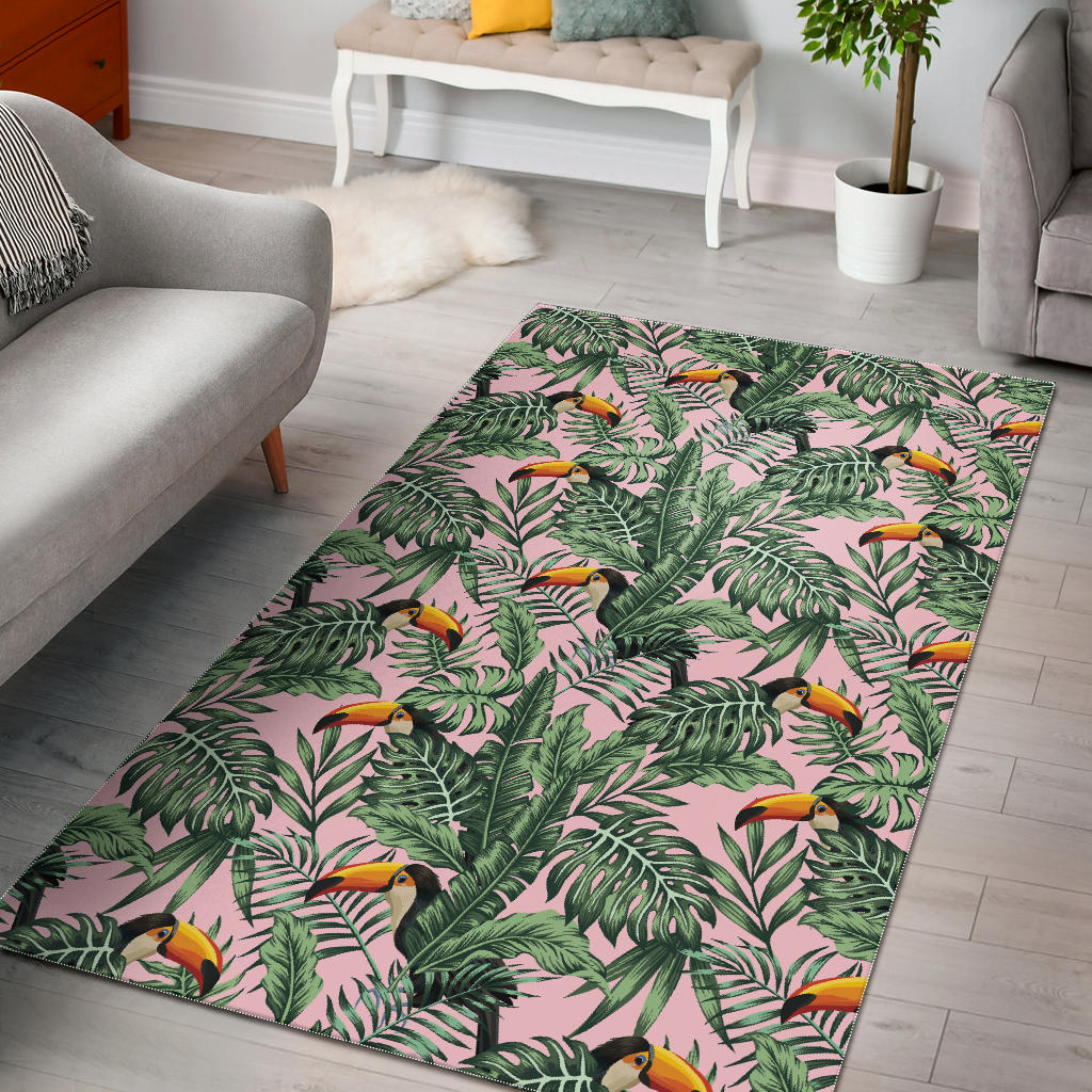Toucan tropical green jungle palm pattern Area Rug is a uniqued design and limited item. It made to order, hand printed, and sewn with love in our factory.
