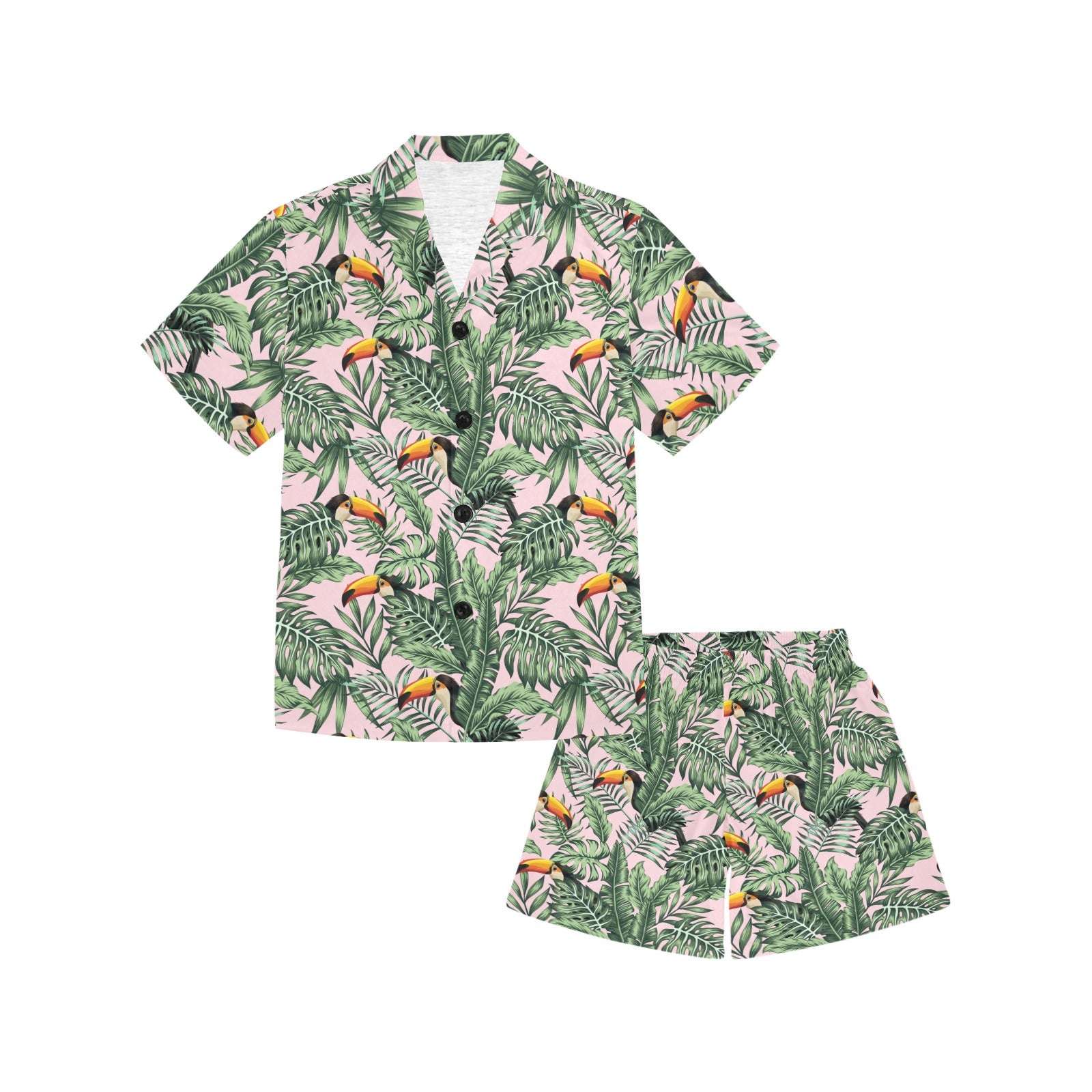 Toucan tropical green jungle palm pattern Kids' Boys' Girls' V-Neck Short Pajama Set