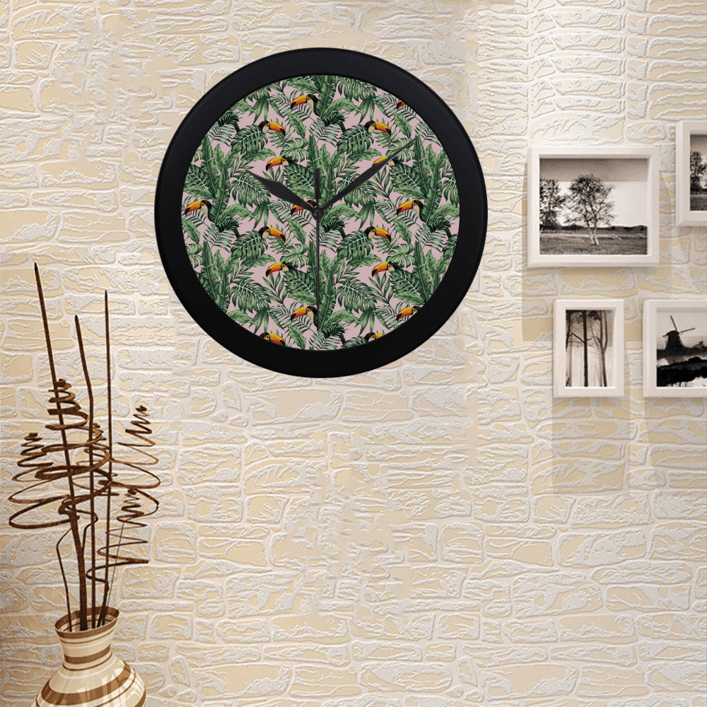 Toucan tropical green jungle palm pattern Elegant Black Wall Clock is a uniqued design and limited item. It made to order, hand printed, and sewn with love in our factory.