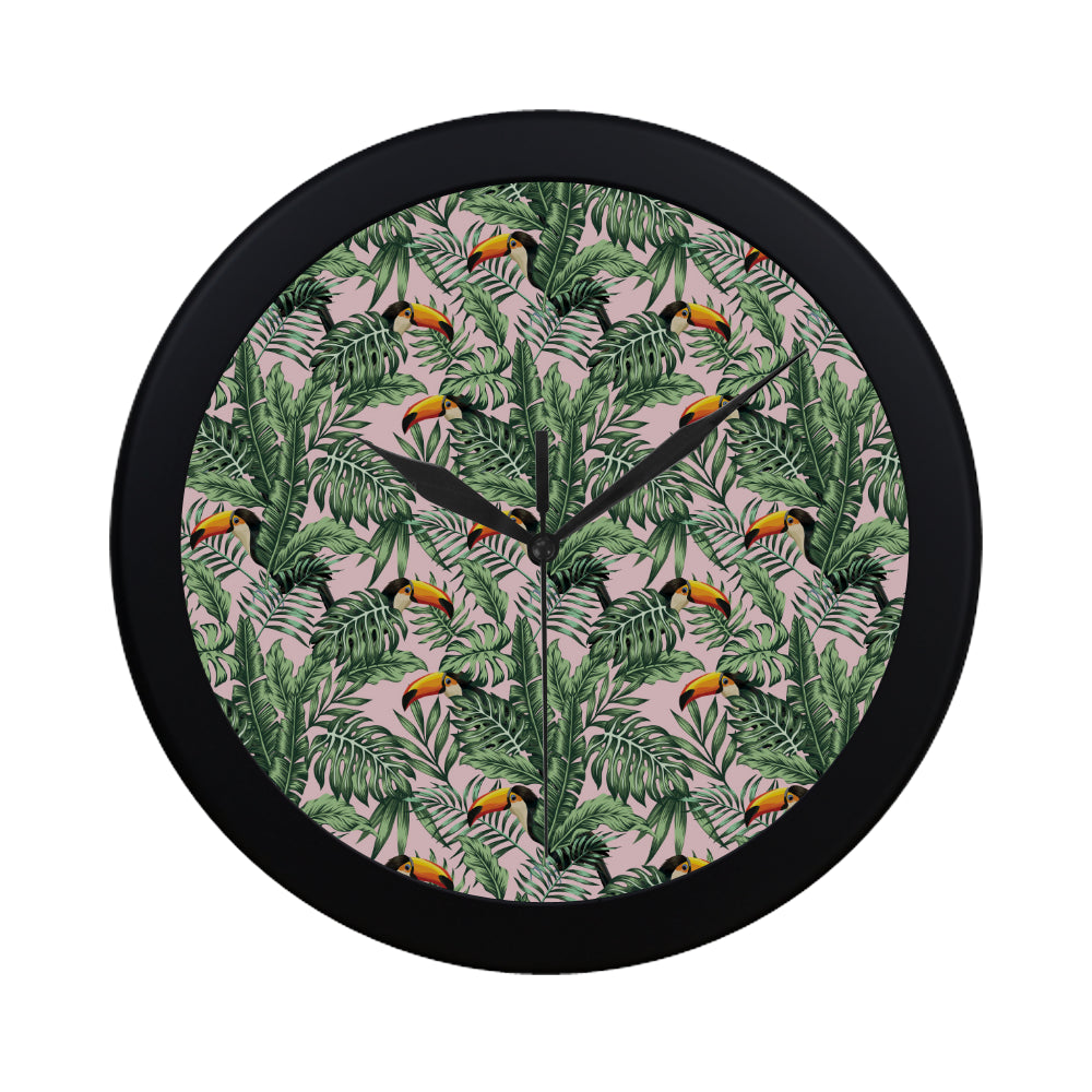 Toucan tropical green jungle palm pattern Elegant Black Wall Clock