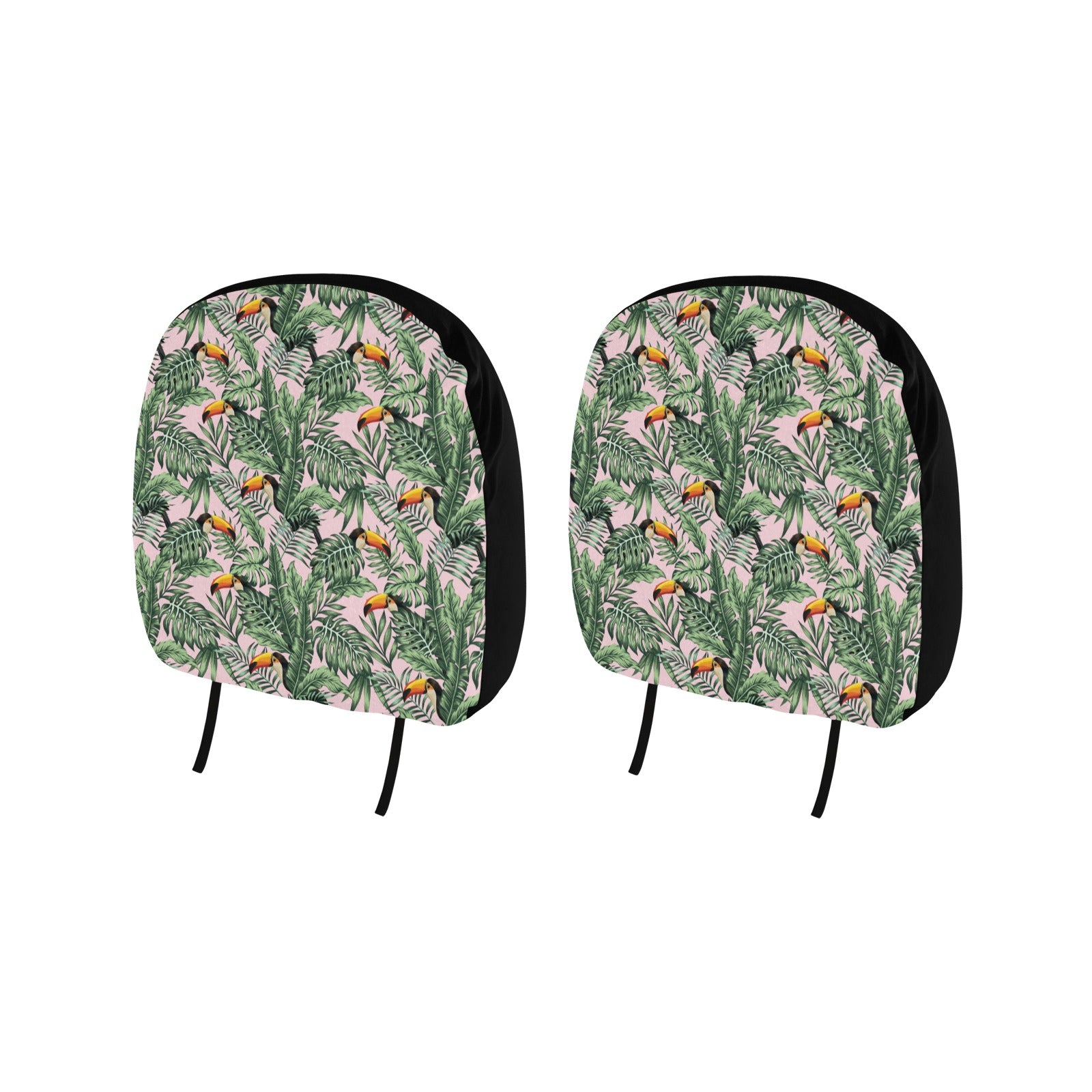 Toucan tropical green jungle palm pattern Car Headrest Cover