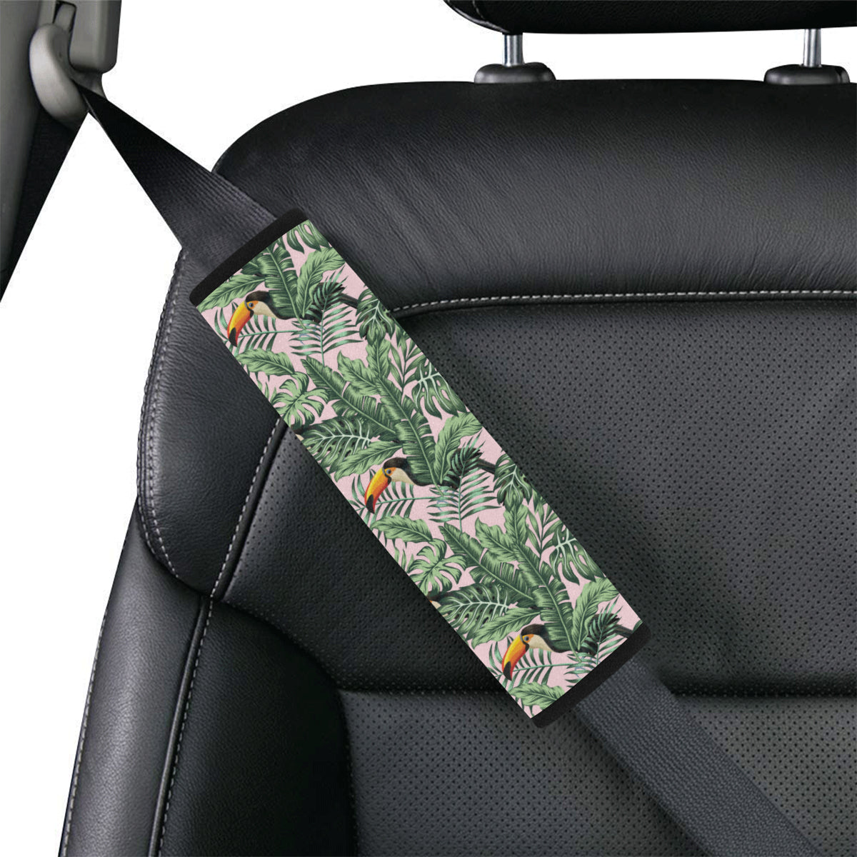 Toucan tropical green jungle palm pattern Car Seat Belt Cover is a uniqued design and limited item. It made to order, hand printed, and sewn with love in our factory.