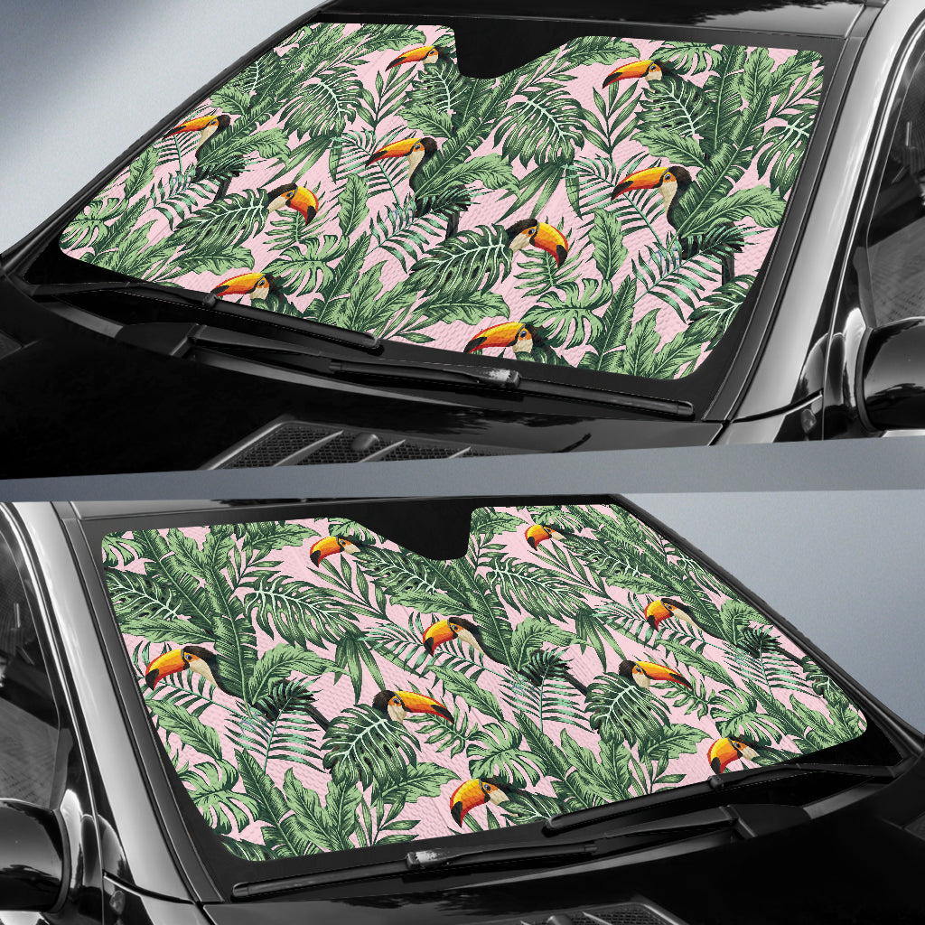Toucan Tropical Green Jungle Palm Pattern Car Sun Shade