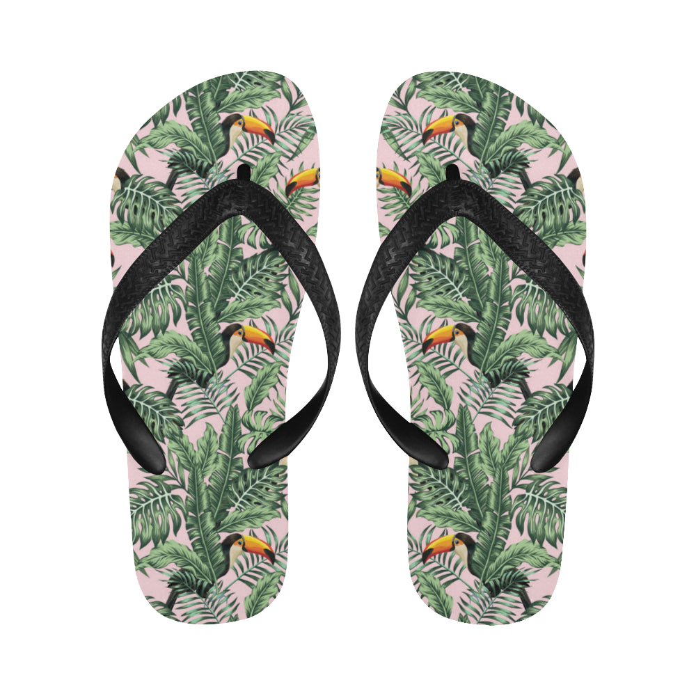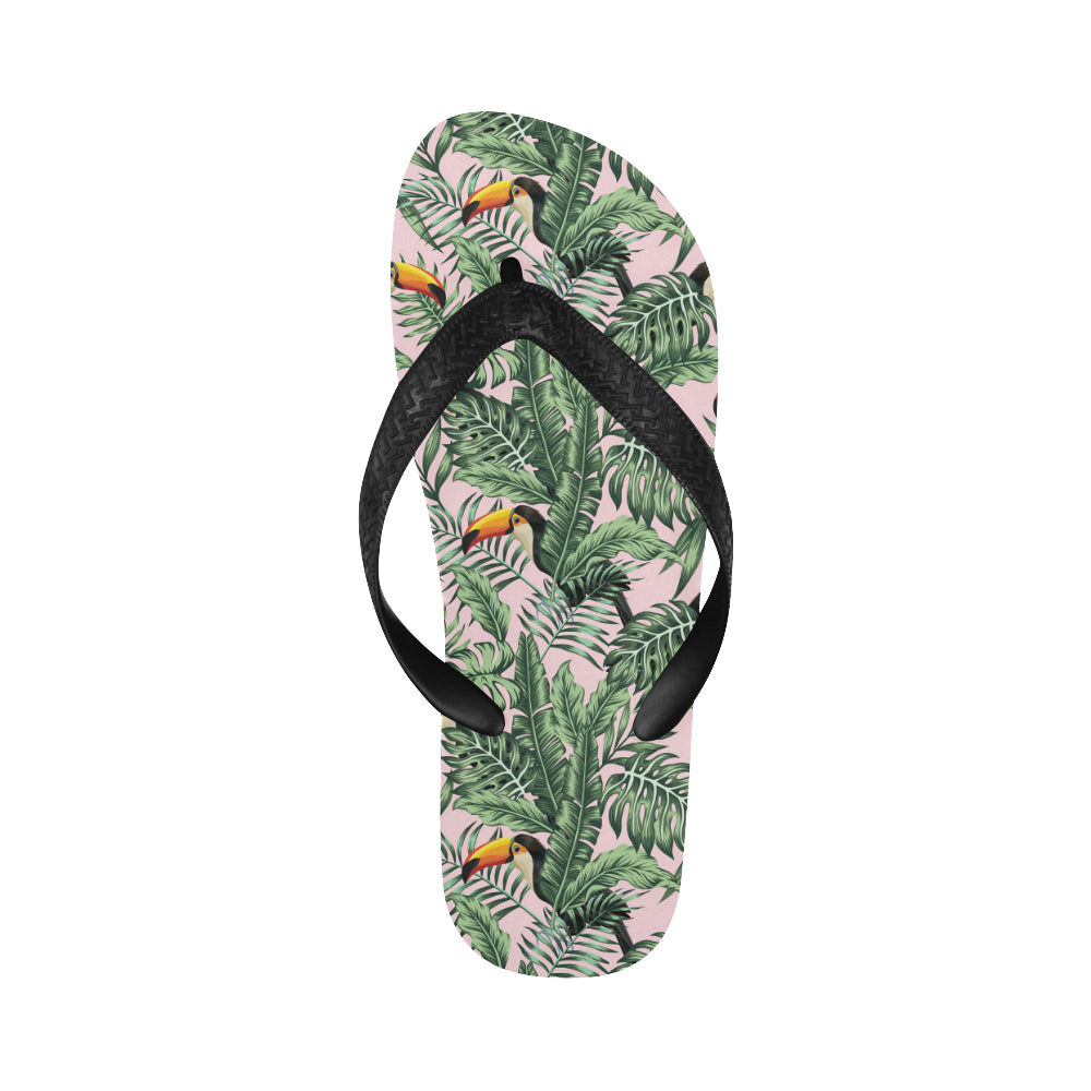 Toucan tropical green jungle palm pattern Unisex Flip Flops