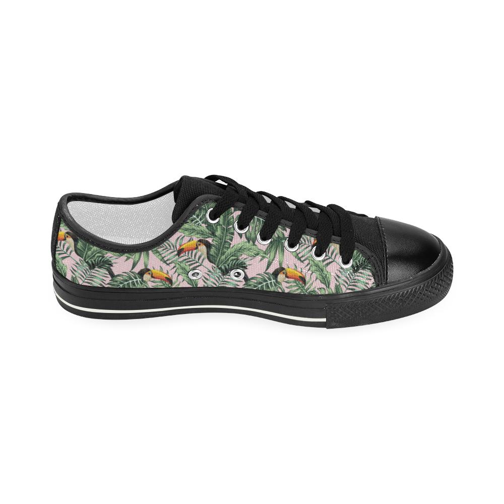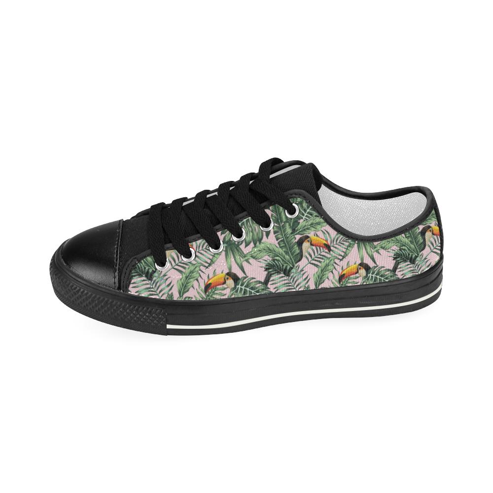 Toucan tropical green jungle palm pattern Kids' Boys' Girls' Low Top Canvas Shoes Black