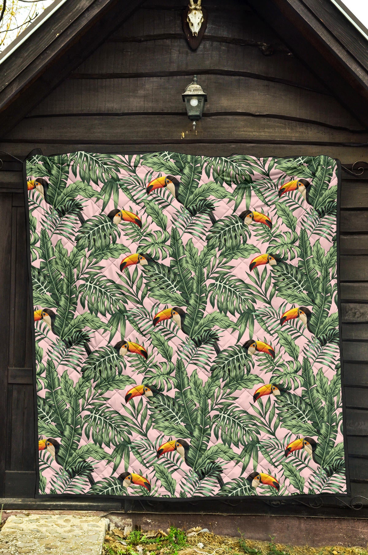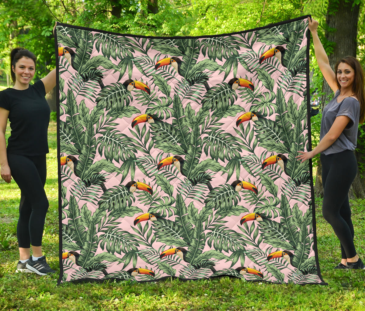 Toucan Tropical Green Jungle Palm Pattern Premium Quilt is a uniqued design and limited item. It made to order, hand printed, and sewn with love in our factory.