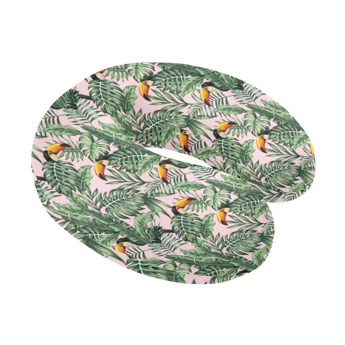 Toucan tropical green jungle palm pattern U-Shaped Travel Neck Pillow