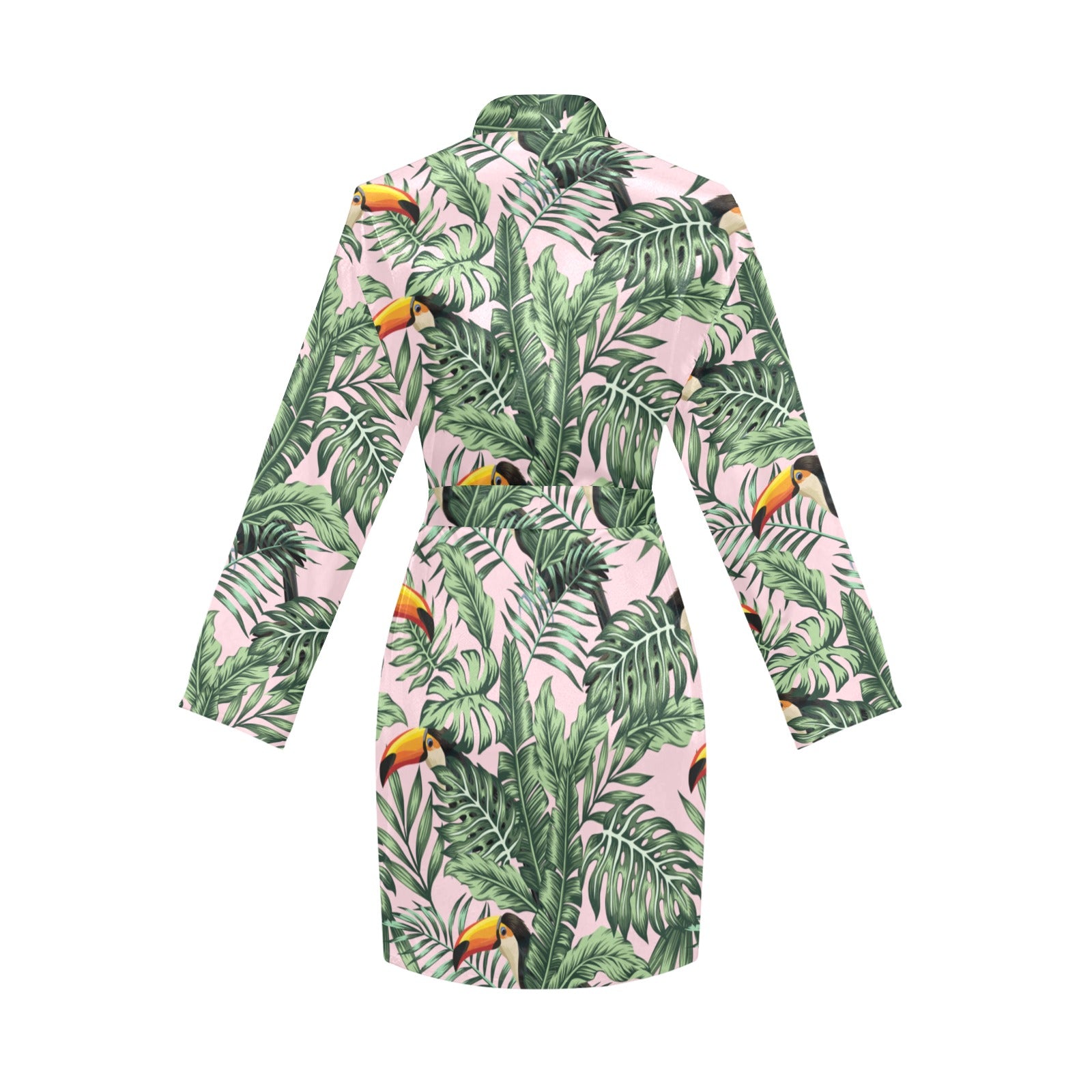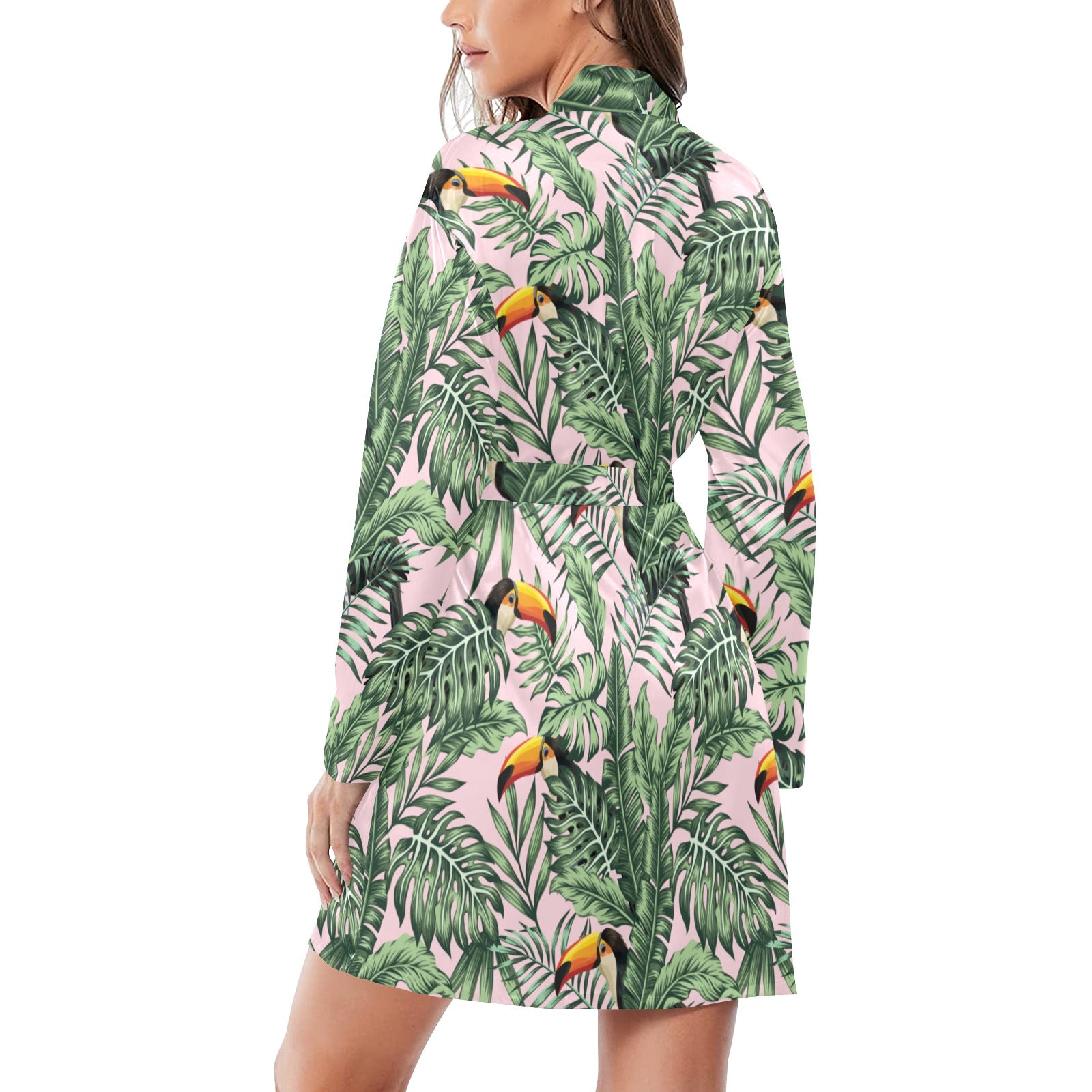 Toucan tropical green jungle palm pattern Women's Long Sleeve Belted Night Robe
