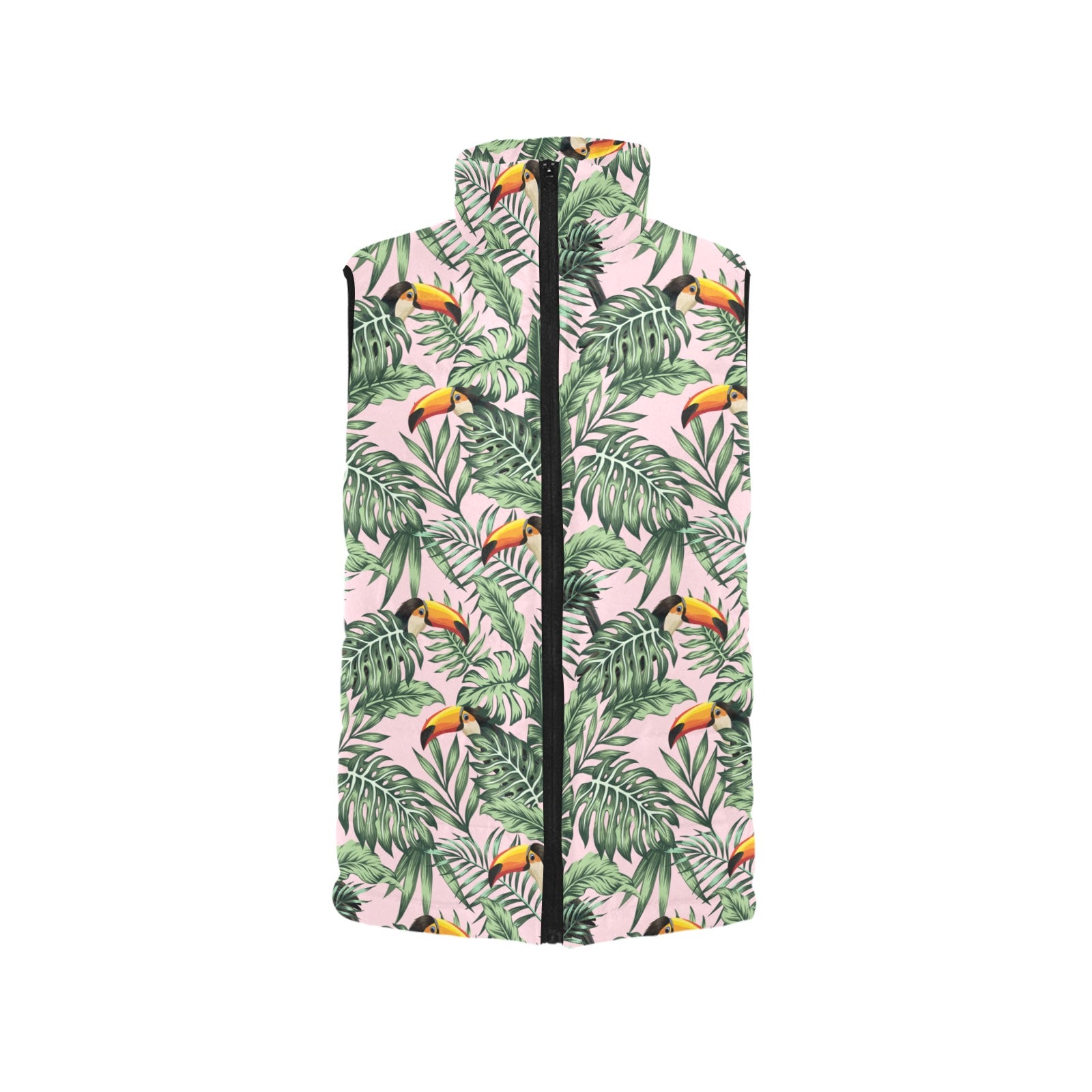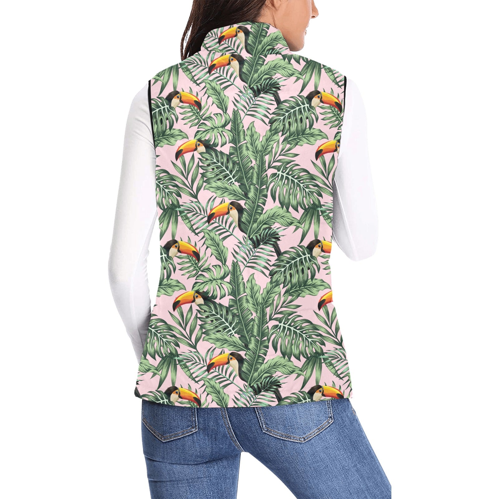 Toucan tropical green jungle palm pattern Women's Padded Vest