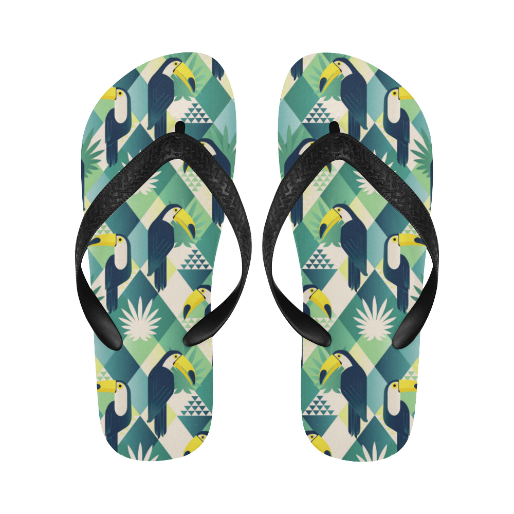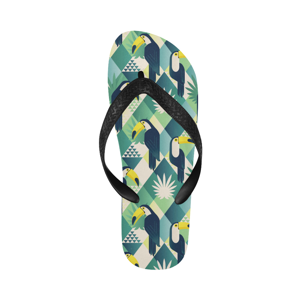 Toucan tropical leaves design pattern Unisex Flip Flops is a uniqued design and limited item. It made to order, hand printed, and sewn with love in our factory.