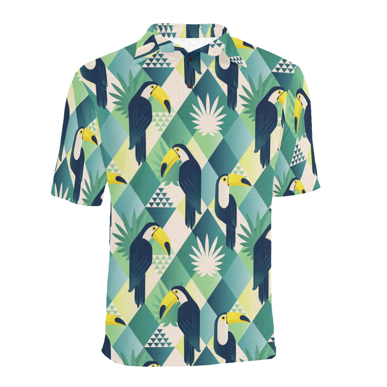 Toucan tropical leaves design pattern Men's All Over Print Polo Shirt