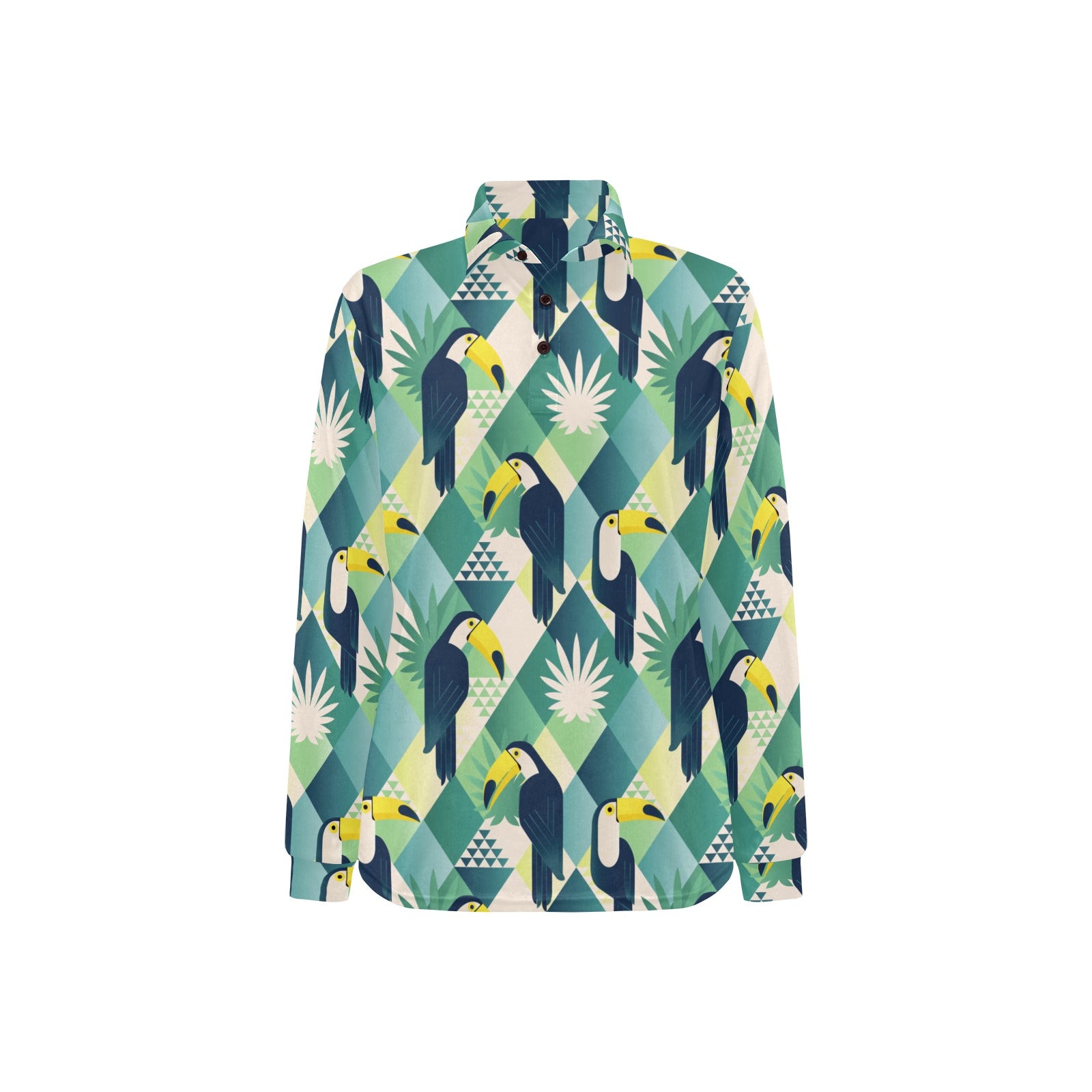 Toucan tropical leaves design pattern Women's Long Sleeve Polo Shirt