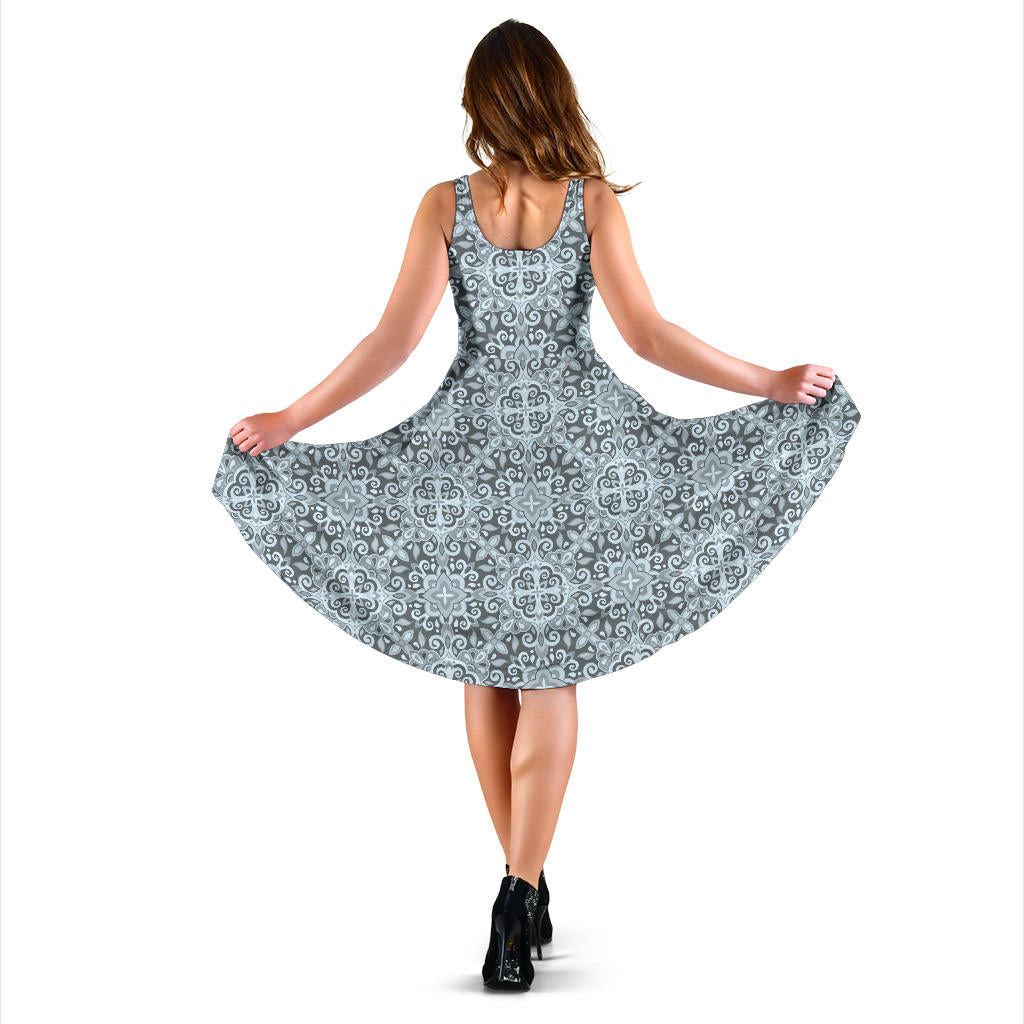Traditional indian element pattern Sleeveless Midi Dress is a uniqued design and limited item. It made to order, hand printed, and sewn with love in our factory.