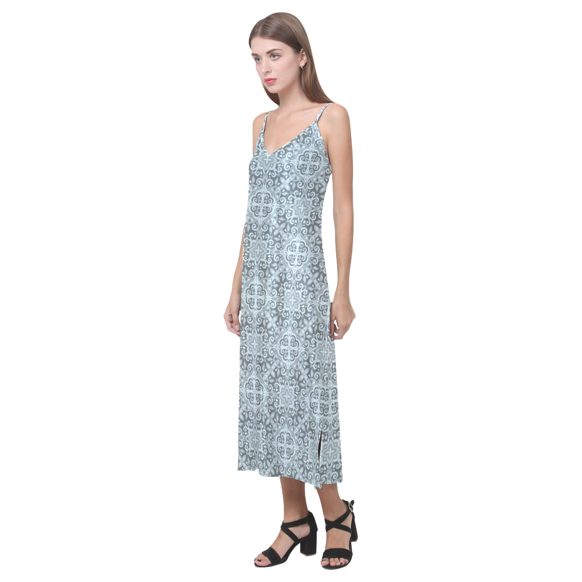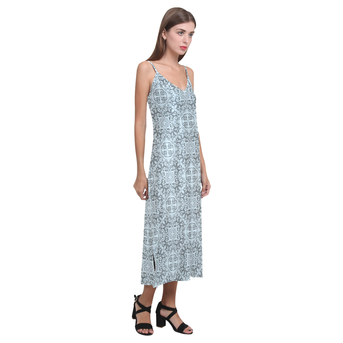 Traditional indian element pattern V-Neck Open Fork Long Dress is a uniqued design and limited item. It made to order, hand printed, and sewn with love in our factory.