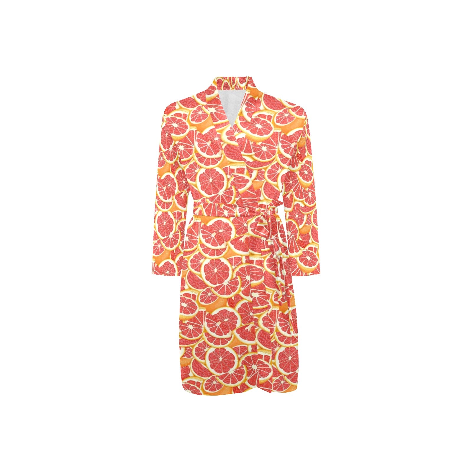 Tropical grapefruit pattern Men's Long Sleeve Belted Night Robe