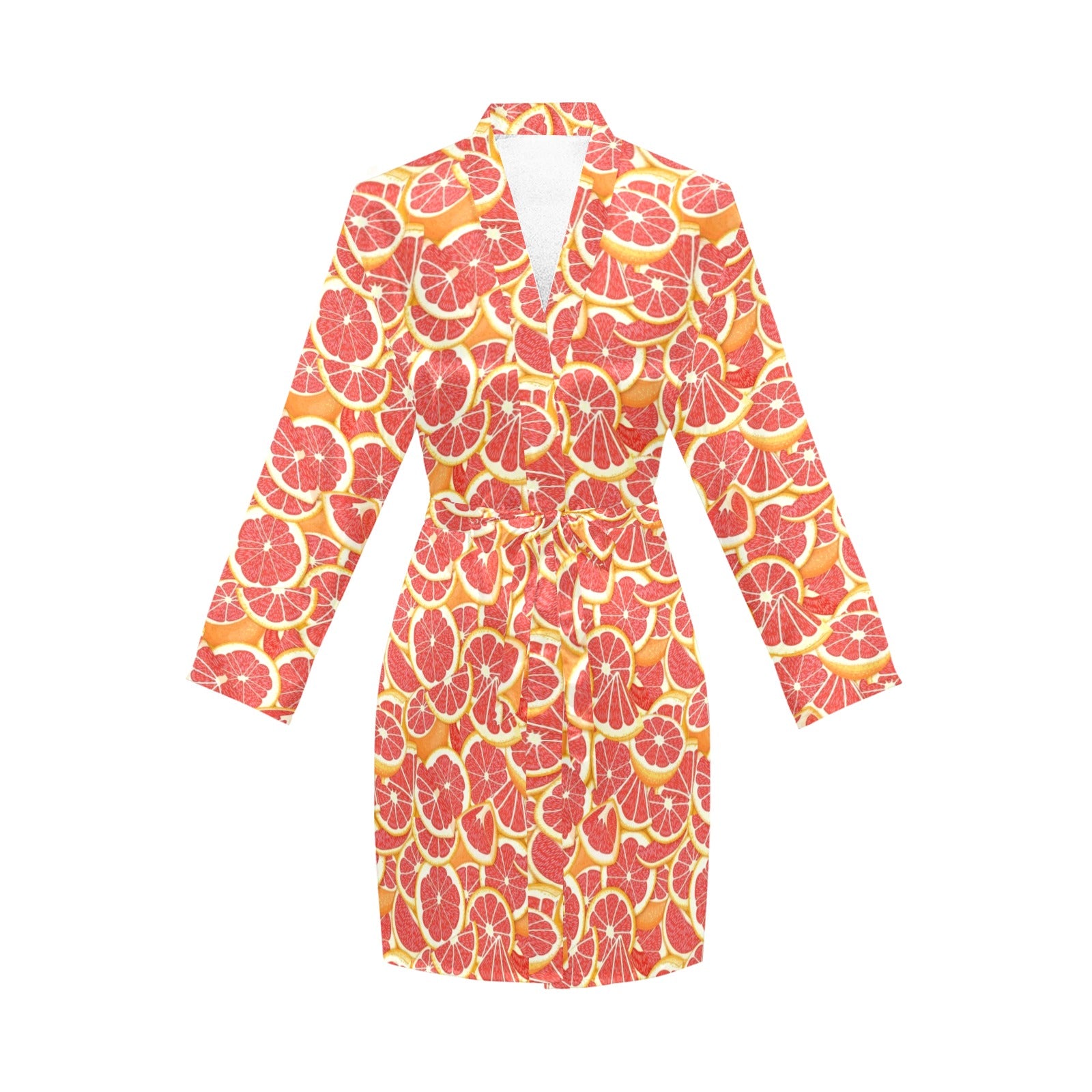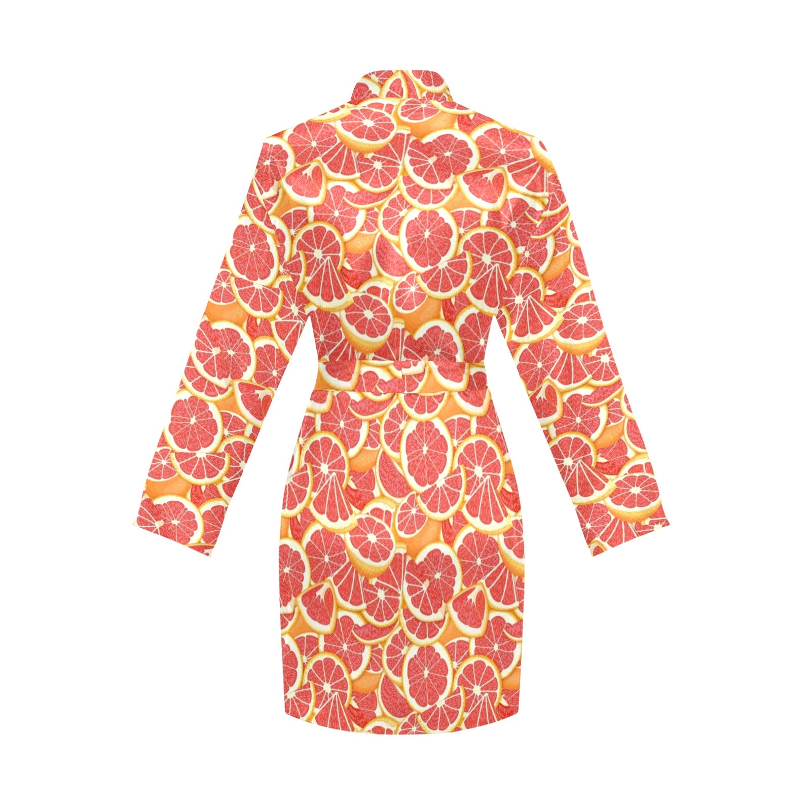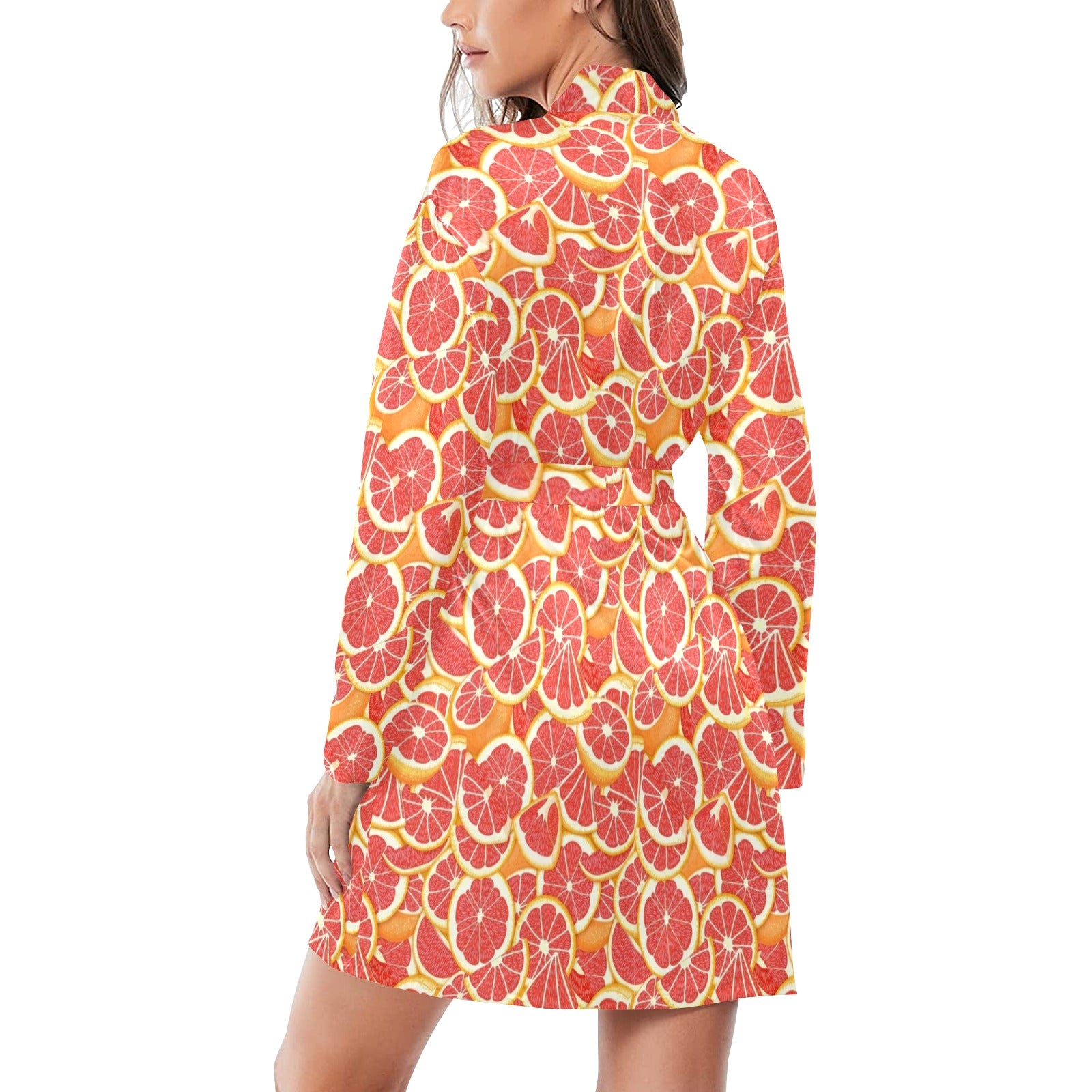 Tropical grapefruit pattern Women's Long Sleeve Belted Night Robe