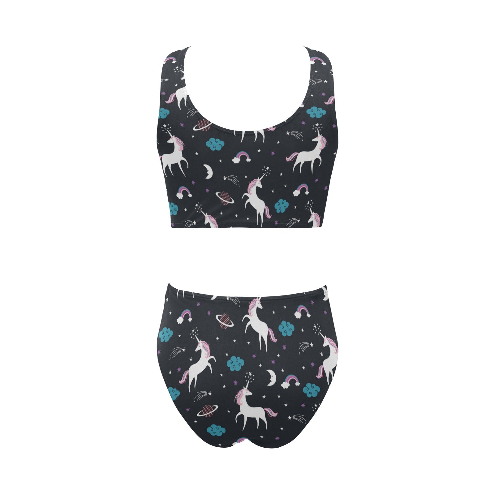unicorn rainbows moon clound star pattern Chest Bowknot High Waisted Bikini Swimsuit