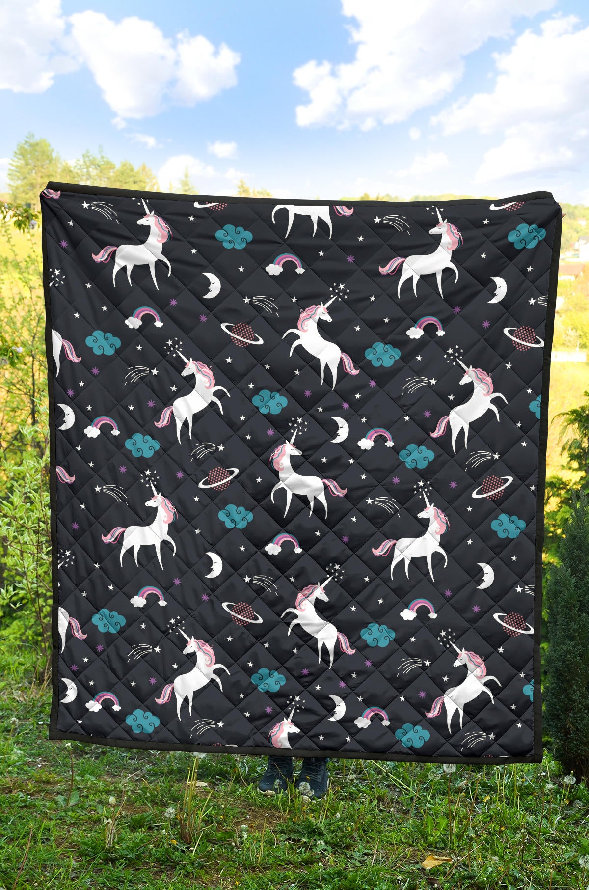 Unicorn Rainbows Moon Clound Star Pattern Premium Quilt is a uniqued design and limited item. It made to order, hand printed, and sewn with love in our factory.