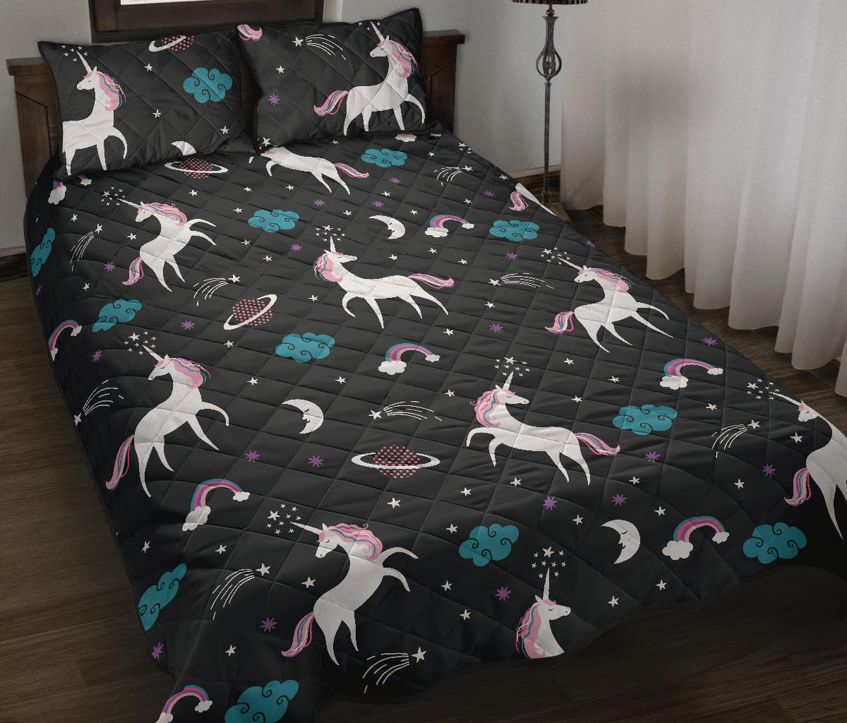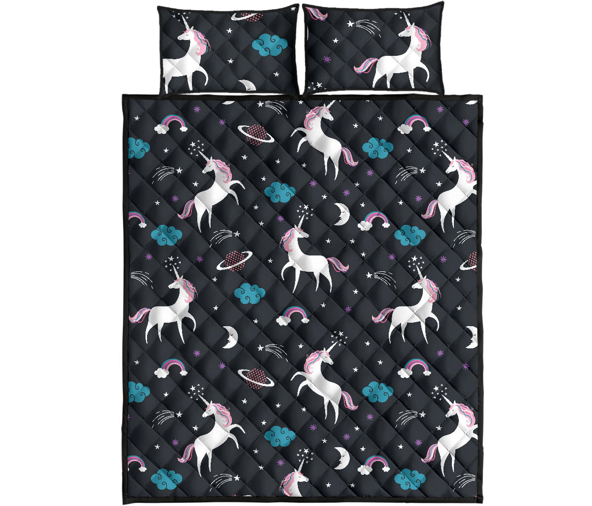 unicorn rainbows moon clound star pattern Quilt Bed Set