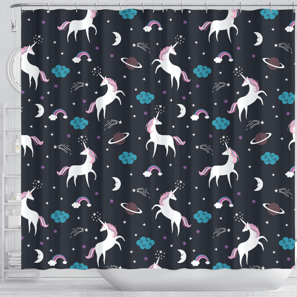 Unicorn Rainbows Moon Clound Star Pattern Shower Curtain Fulfilled In US
