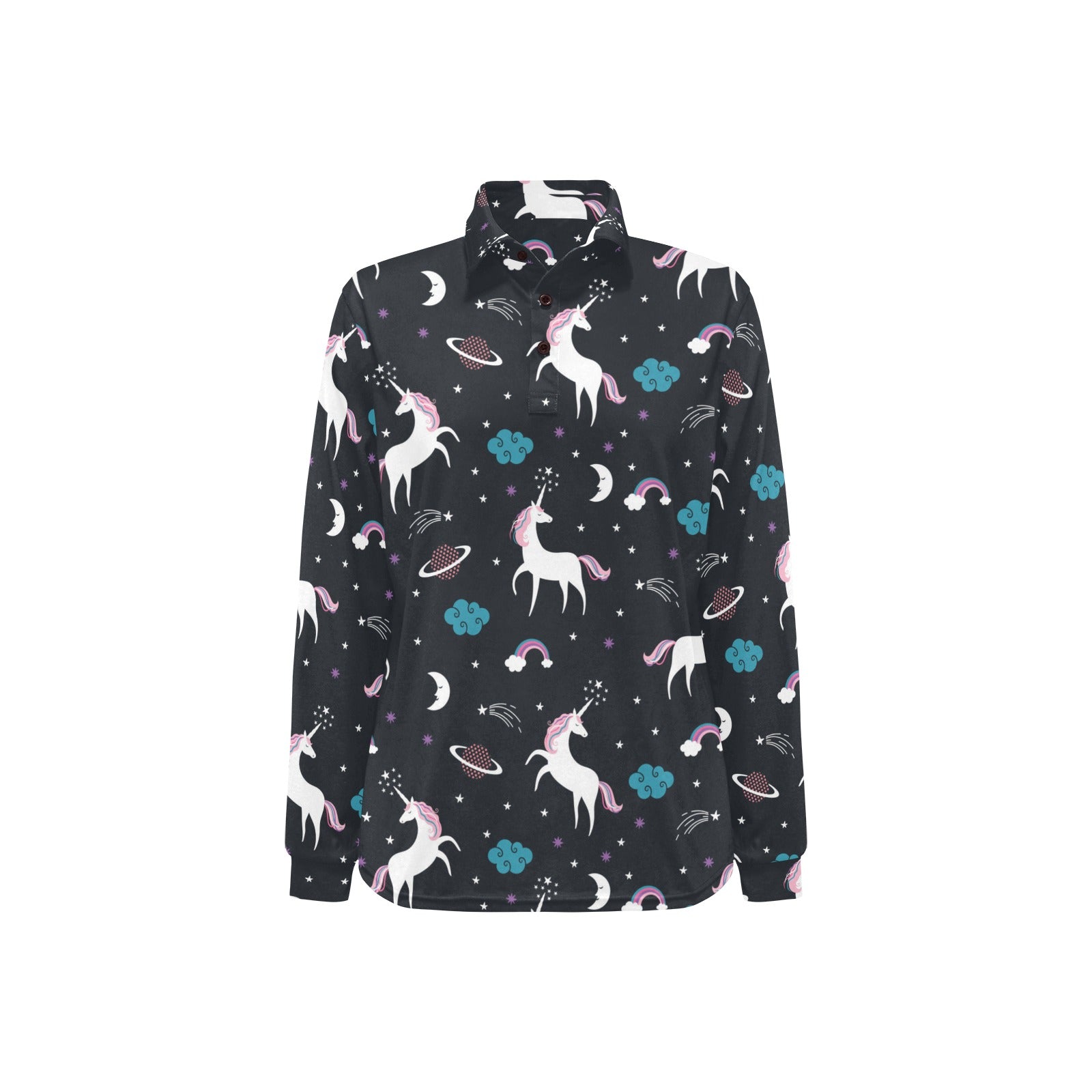 unicorn rainbows moon clound star pattern Women's Long Sleeve Polo Shirt