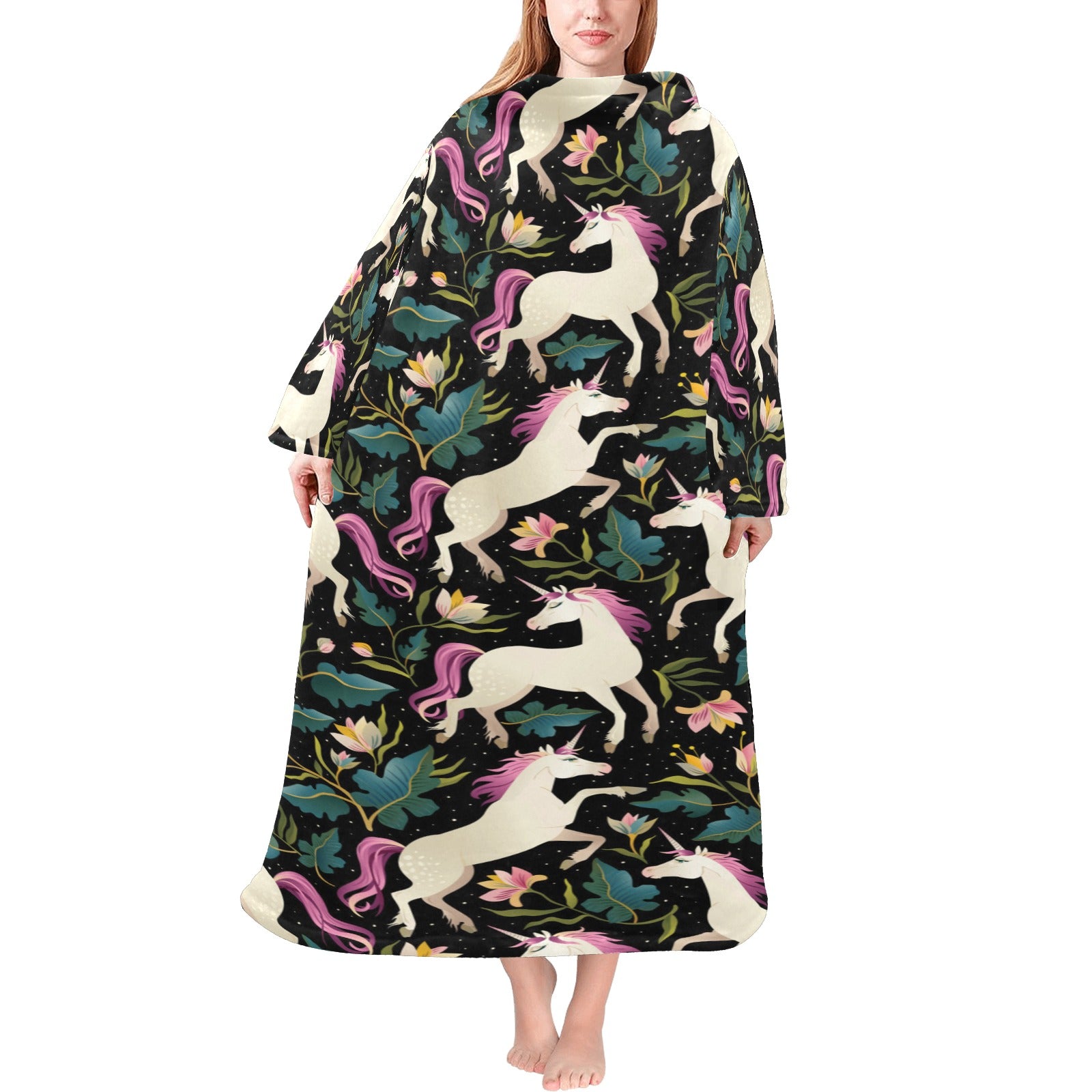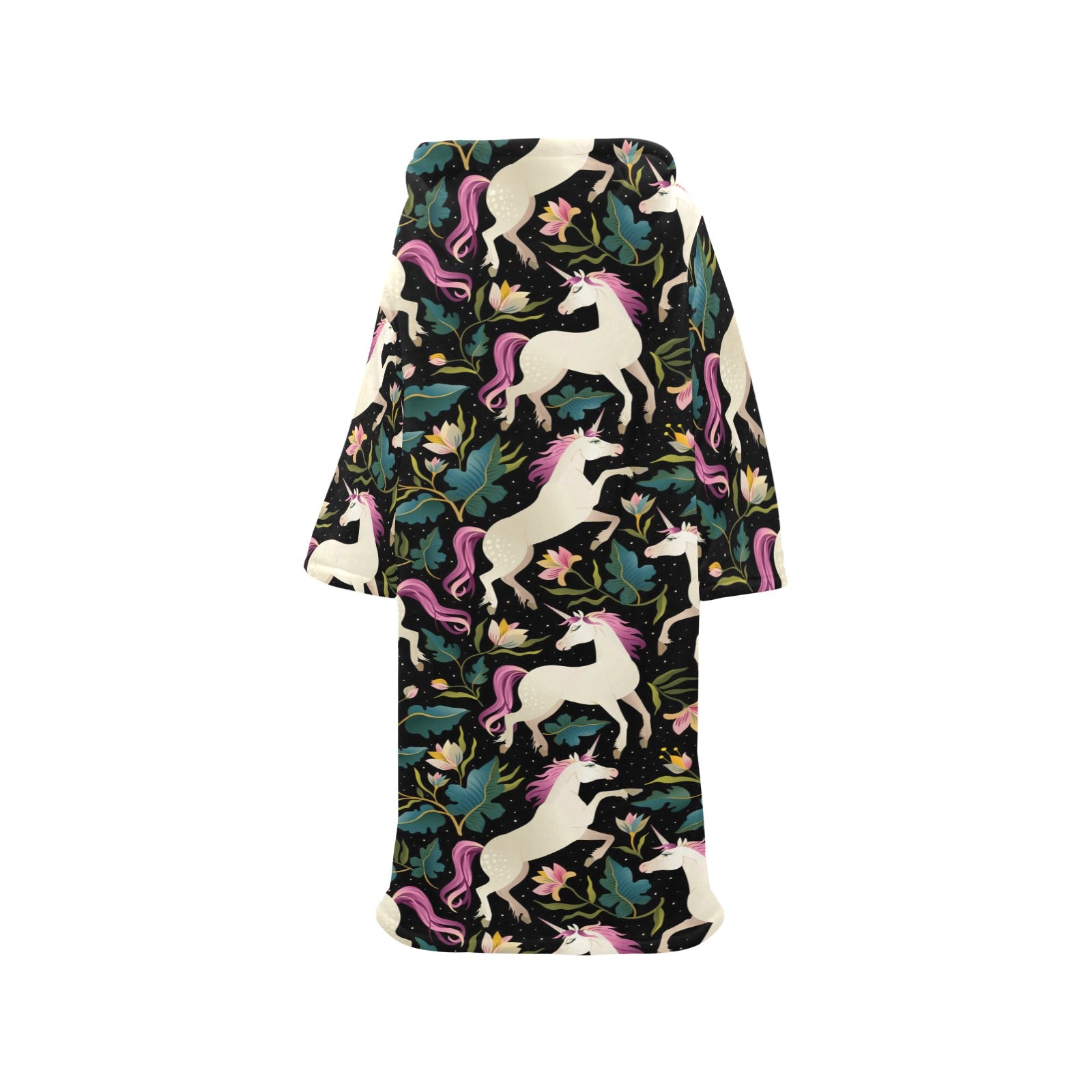 Unicorns forest background Blanket Robe with Sleeves