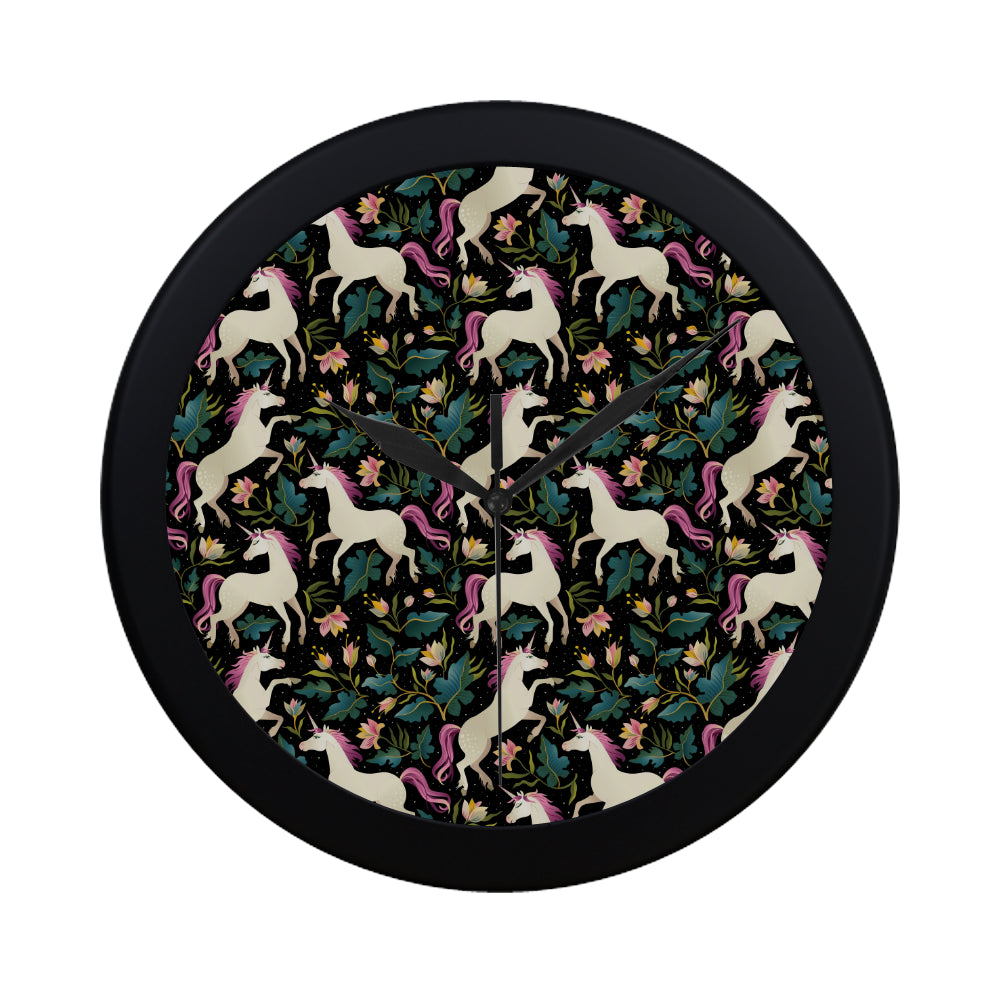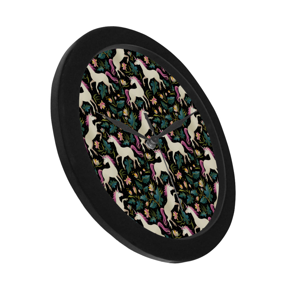 Unicorns forest background Elegant Black Wall Clock