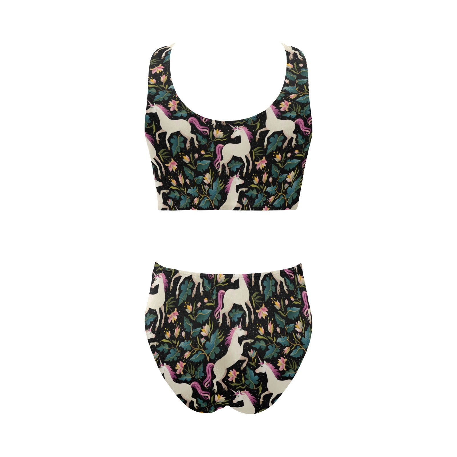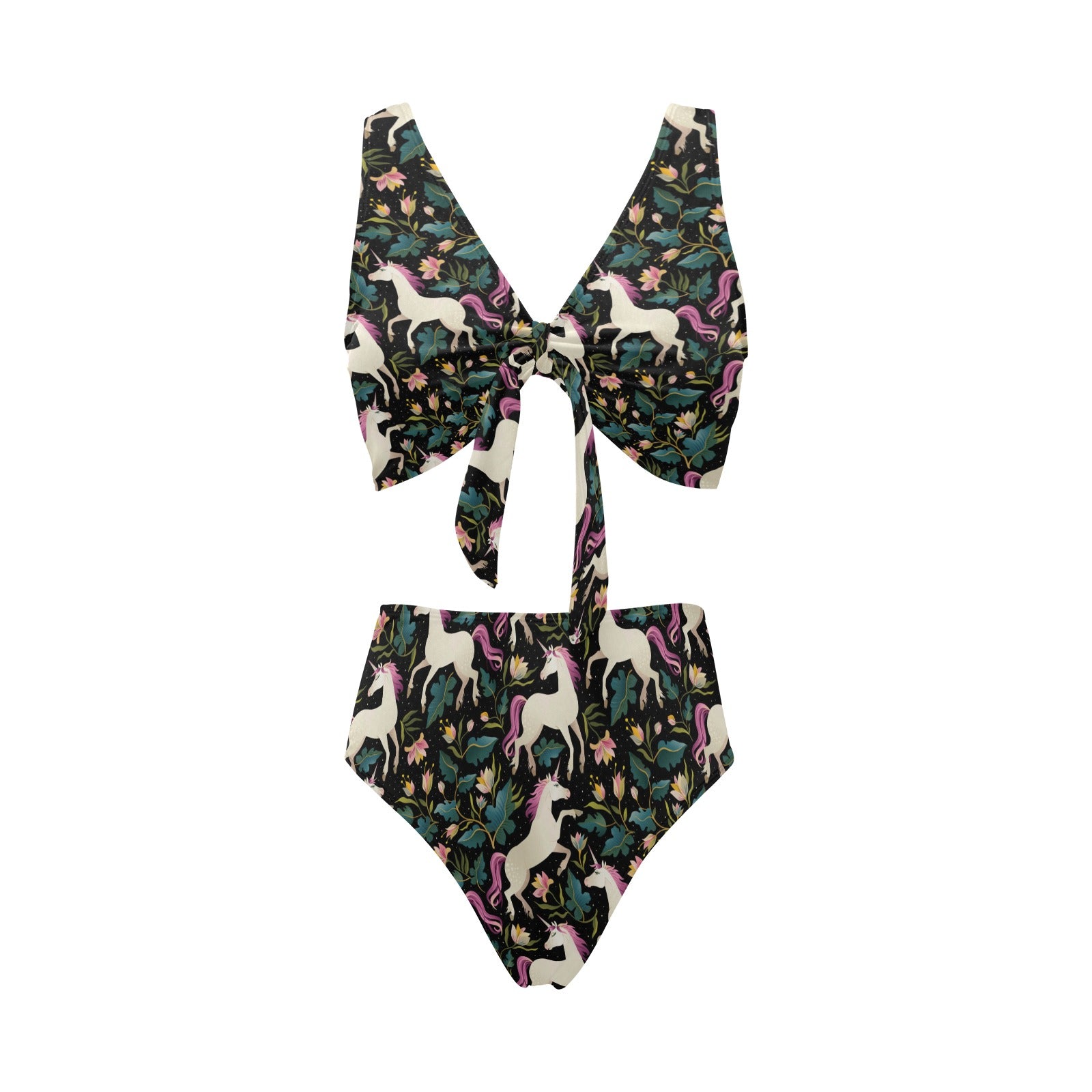 Unicorns forest background Chest Bowknot High Waisted Bikini Swimsuit