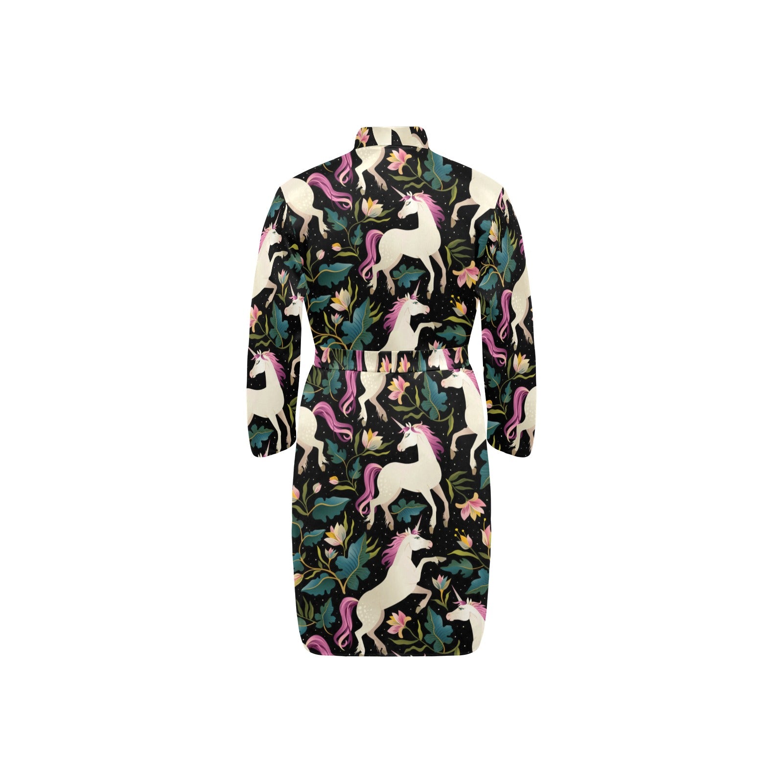 Unicorns forest background Men's Long Sleeve Belted Night Robe