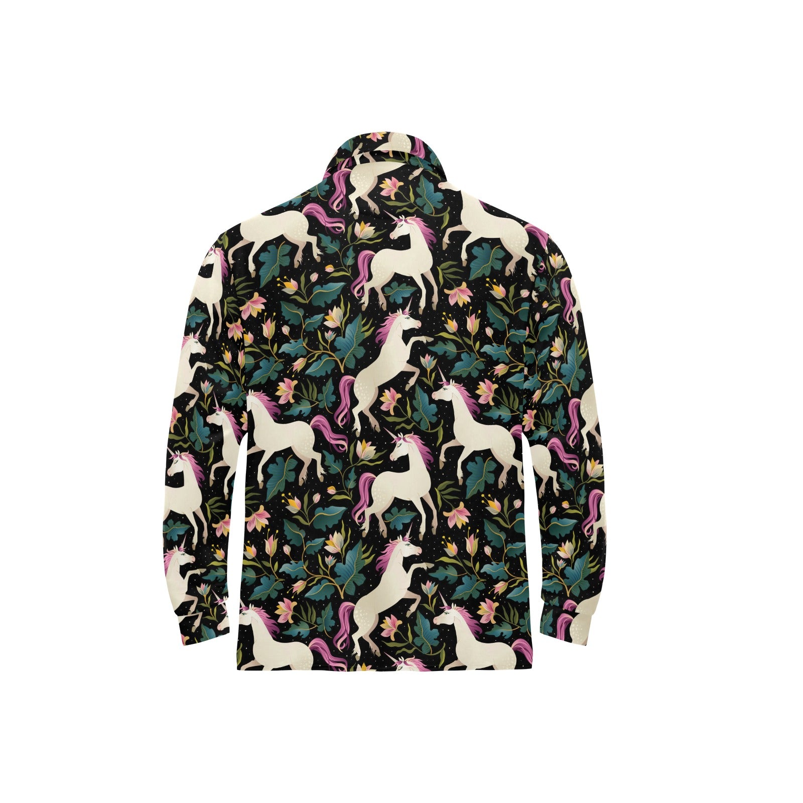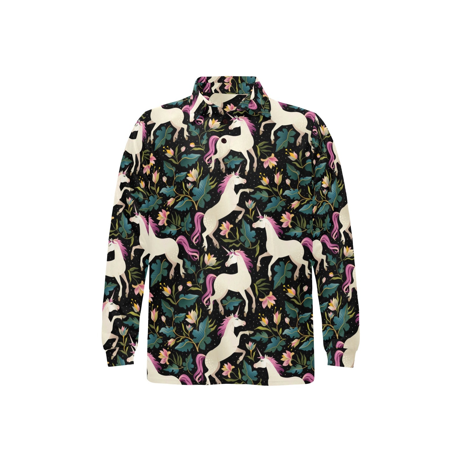 Unicorns forest background Men's Long Sleeve Polo Shirt