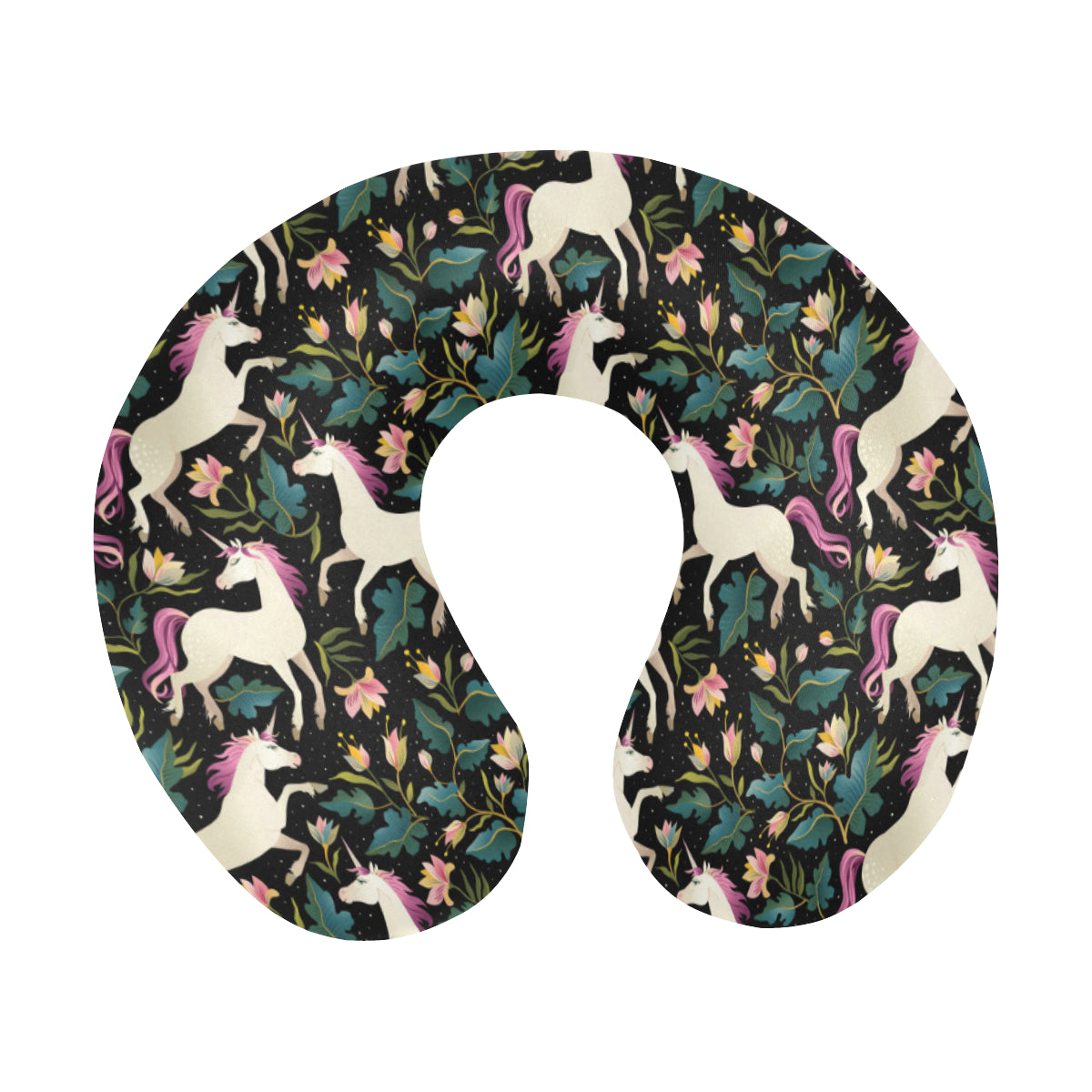 Unicorns forest background U-Shaped Travel Neck Pillow