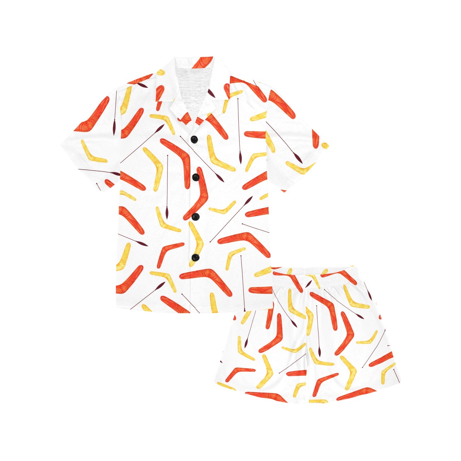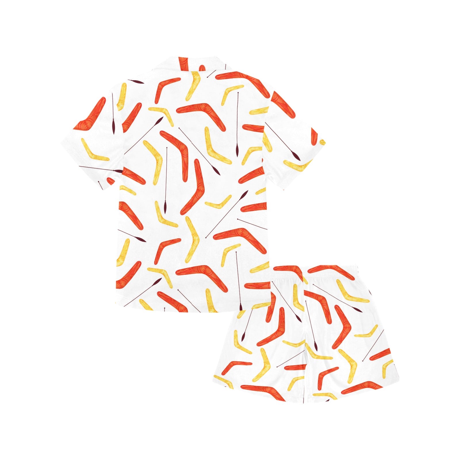 Waterclor boomerang Australian aboriginal ornament Kids' Boys' Girls' V-Neck Short Pajama Set
