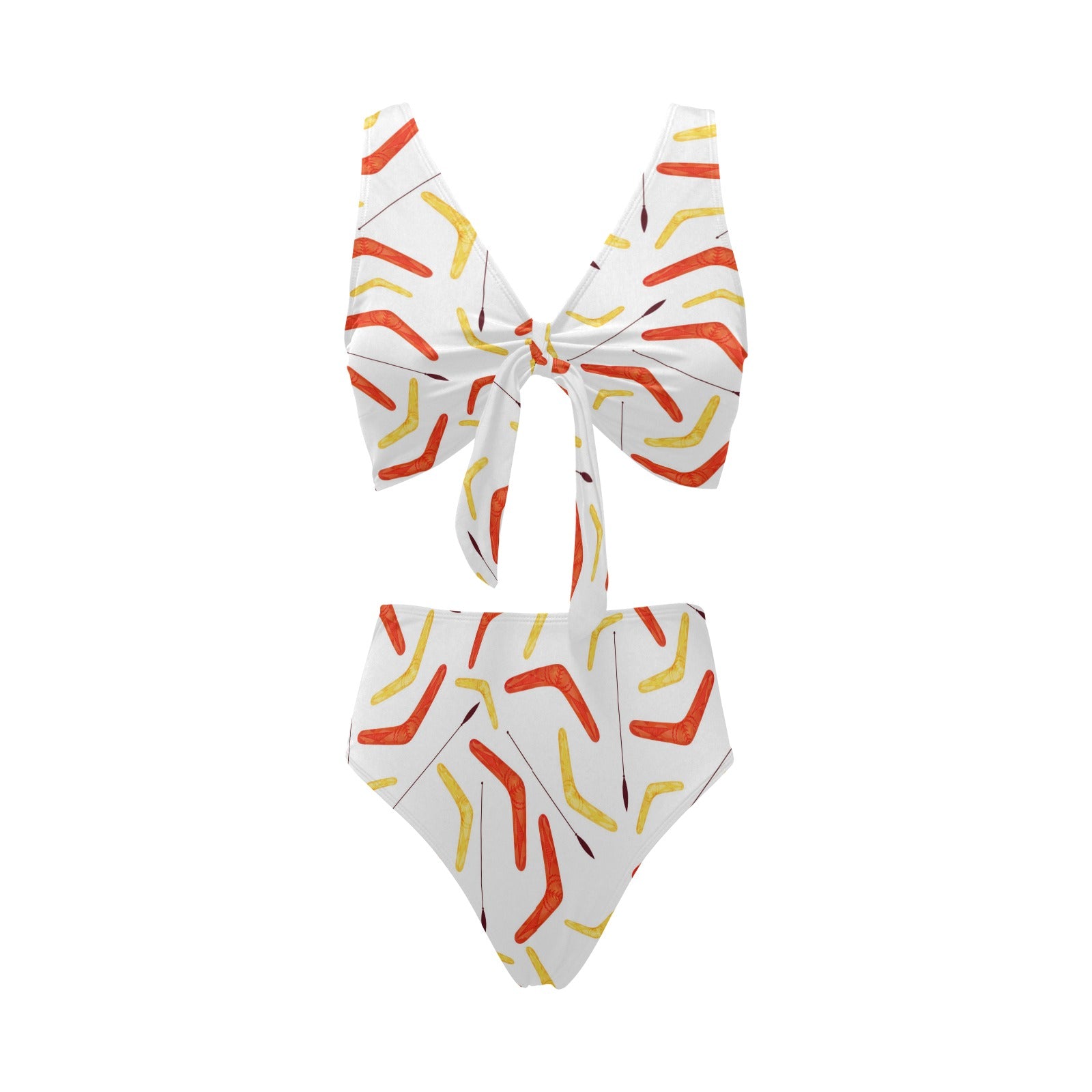 Waterclor boomerang Australian aboriginal ornament Chest Bowknot High Waisted Bikini Swimsuit