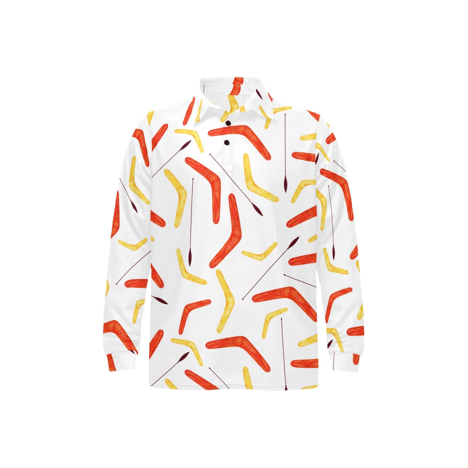 Waterclor boomerang Australian aboriginal ornament Men's Long Sleeve Polo Shirt