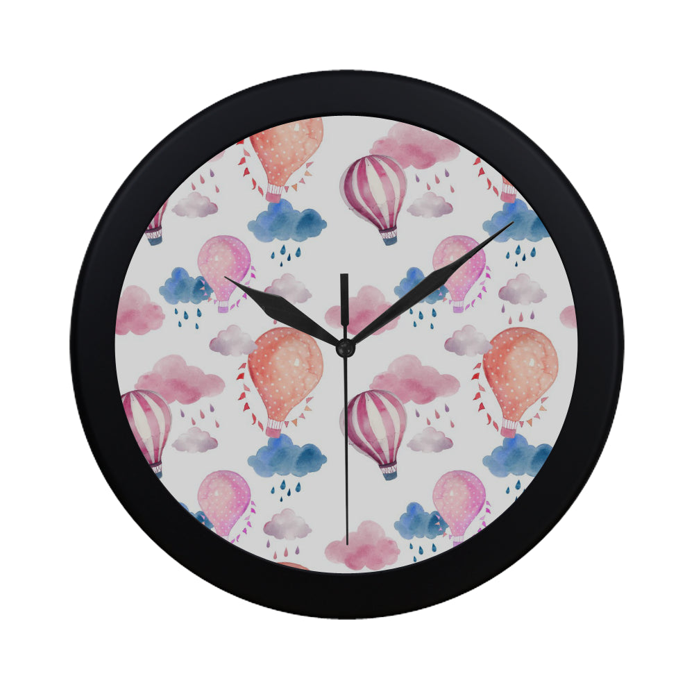 Watercolor air balloon cloud pattern Elegant Black Wall Clock