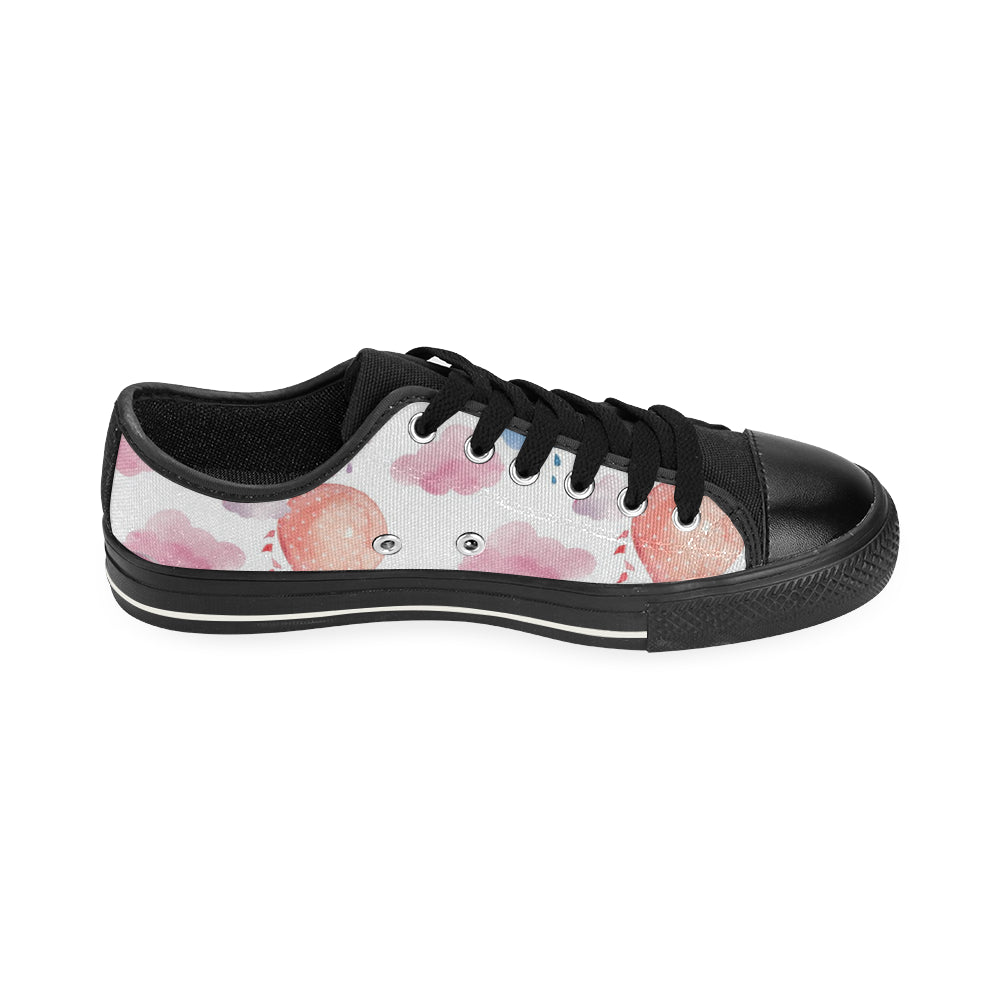 Watercolor air balloon cloud pattern Men's Low Top Canvas Shoes Black