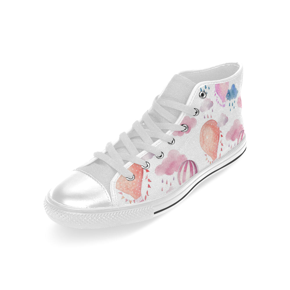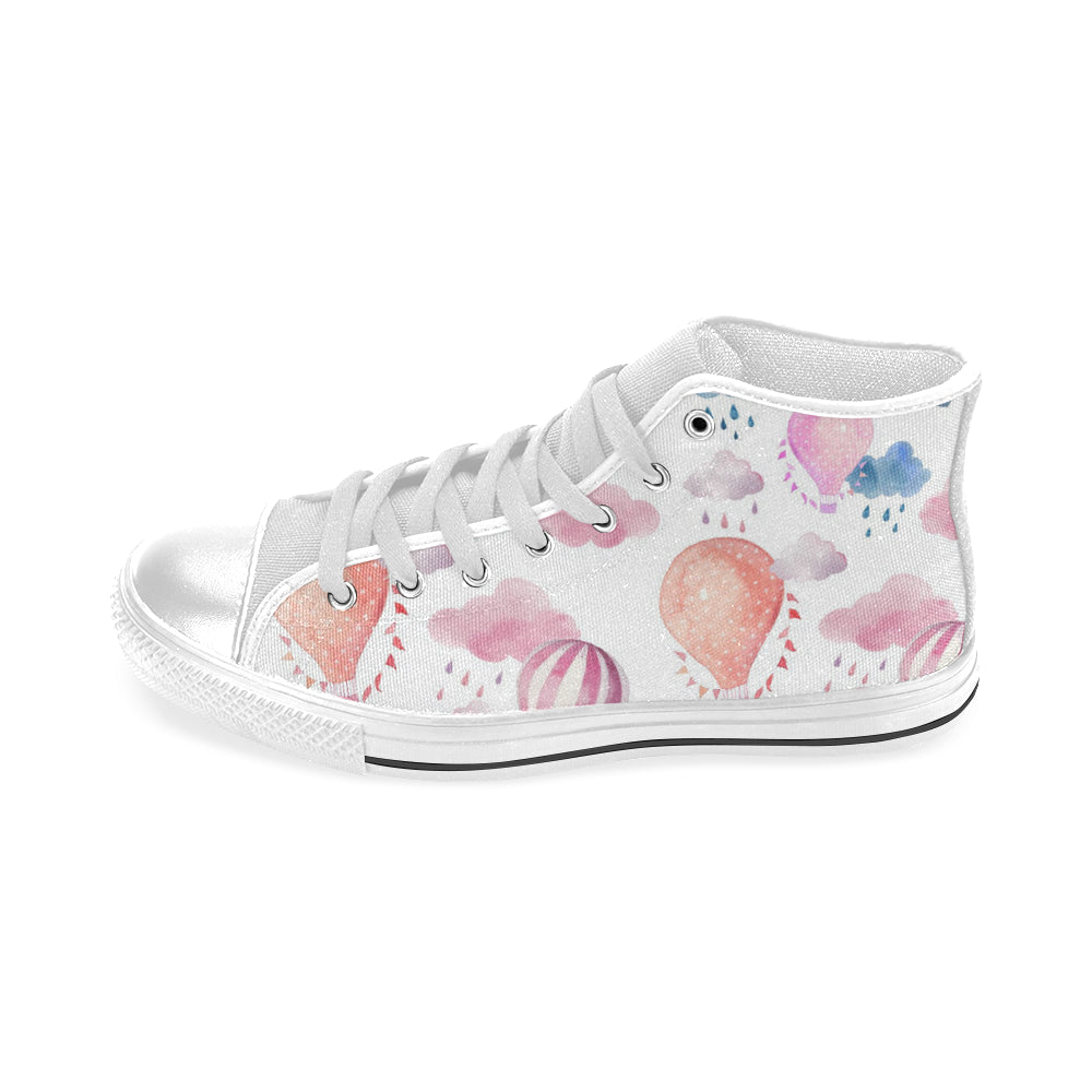 Watercolor air balloon cloud pattern Men's High Top Canvas Shoes White