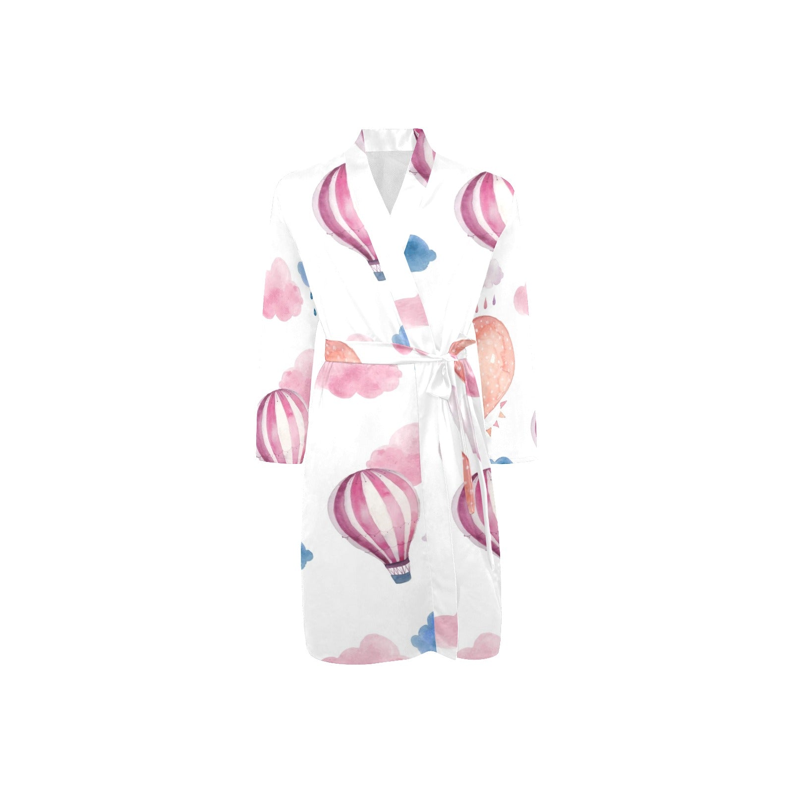 Watercolor air balloon cloud pattern Men's Long Sleeve Belted Night Robe