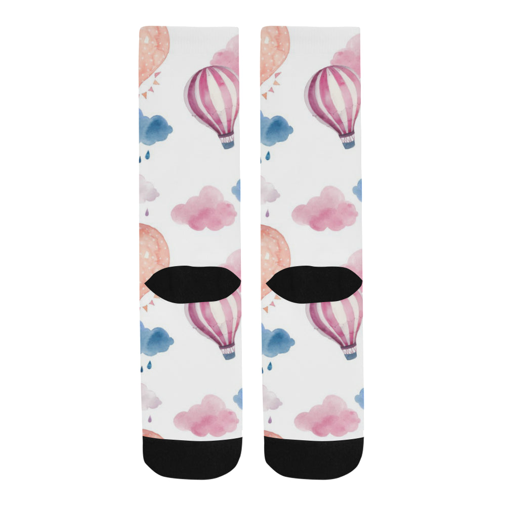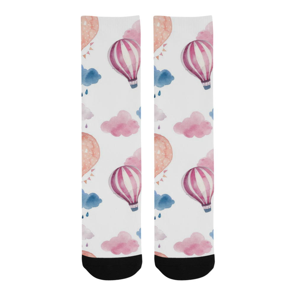 Watercolor air balloon cloud pattern Crew Socks are uniqued design and limited item. It made to order, hand printed, and sewn with love in our factory.