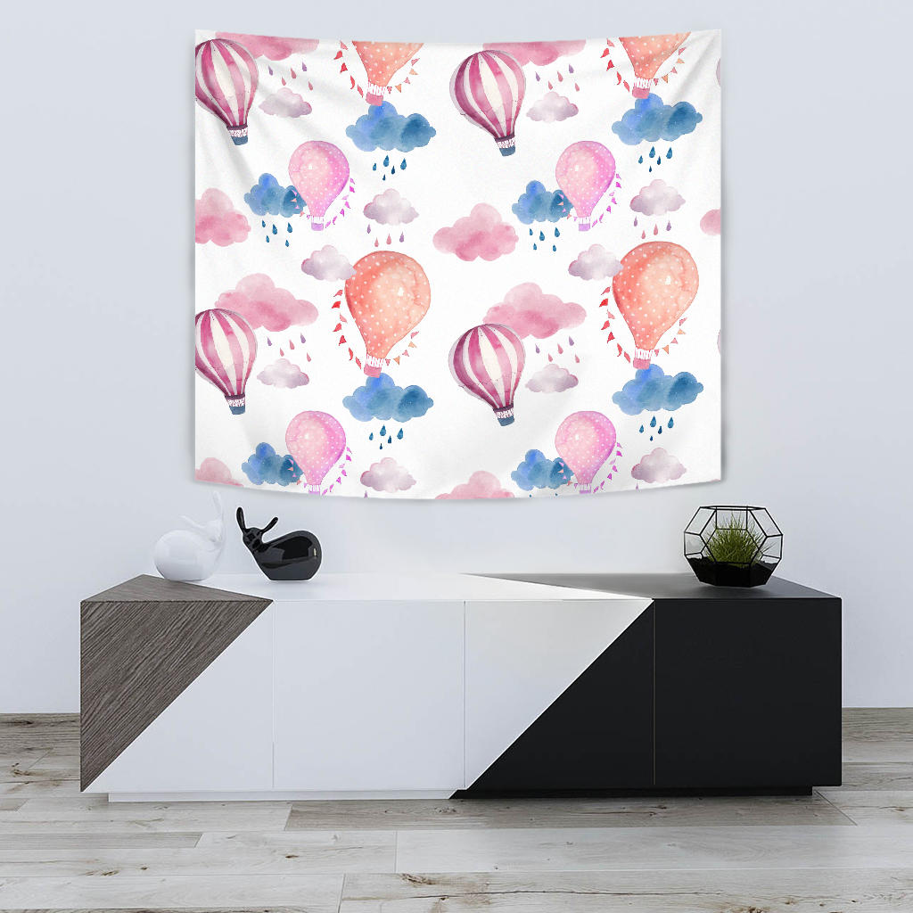 Watercolor Air Balloon Cloud Pattern Wall Tapestry