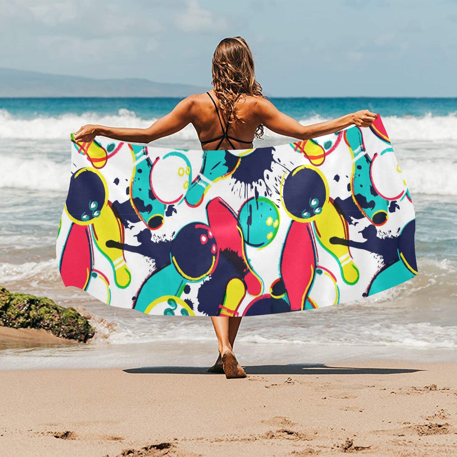 watercolor bowling ball pins Beach Towel