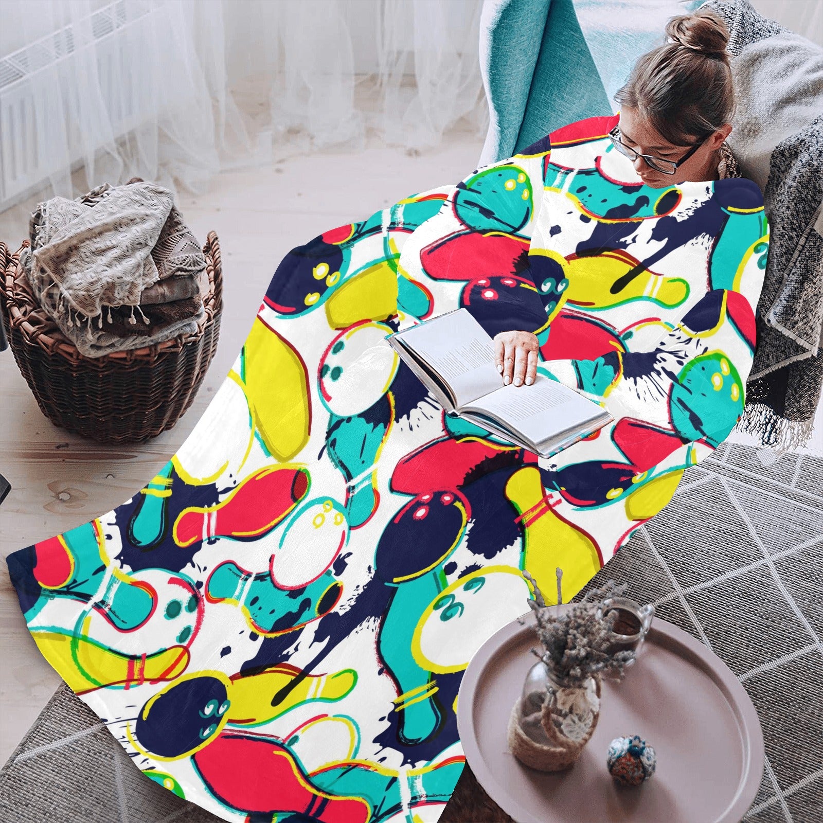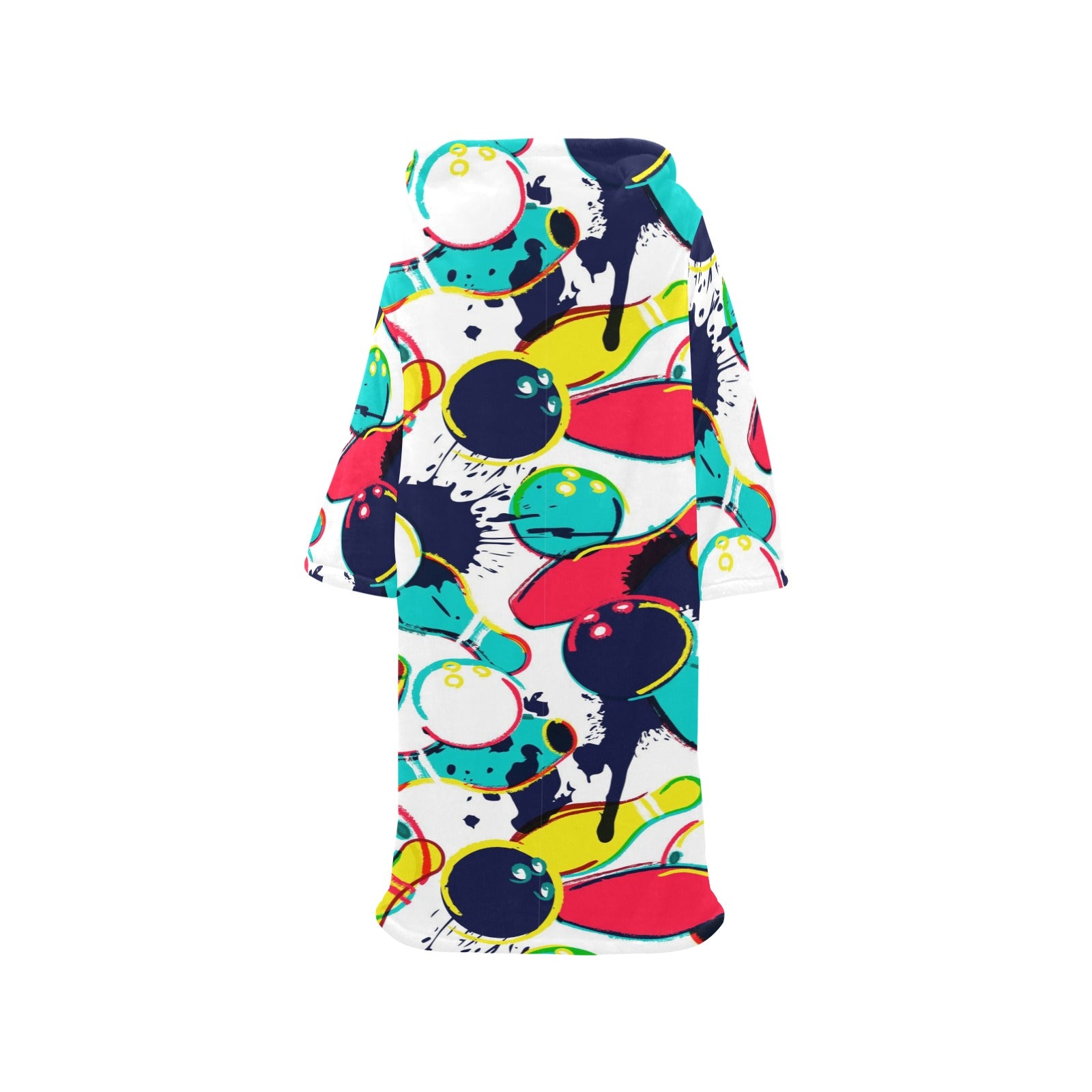 watercolor bowling ball pins Blanket Robe with Sleeves