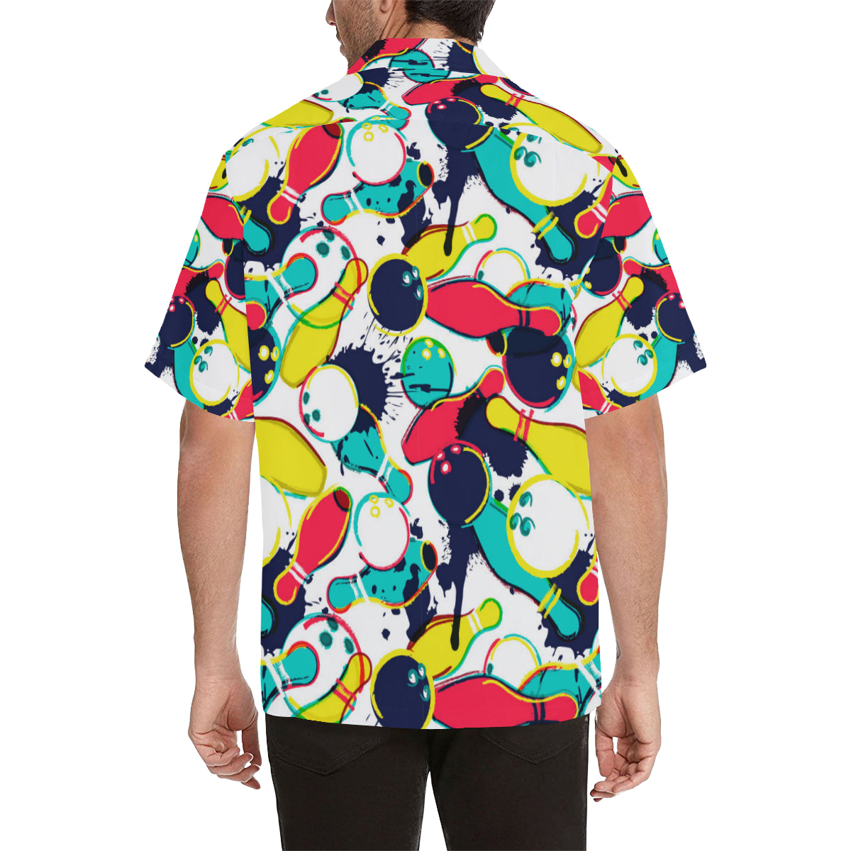 watercolor bowling ball pins Men's All Over Print Hawaiian Shirt is a uniqued design and limited item. It made to order, hand printed, and sewn with love in our factory.
