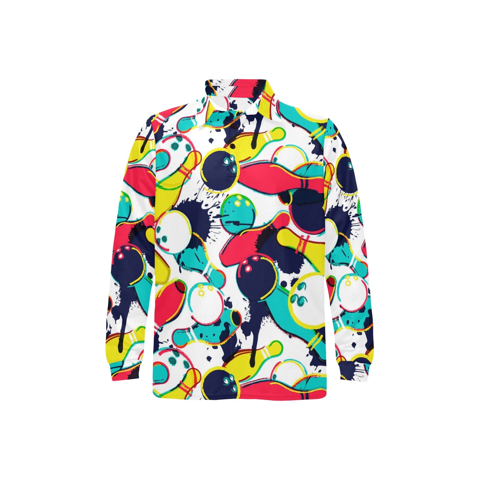 watercolor bowling ball pins Men's Long Sleeve Polo Shirt