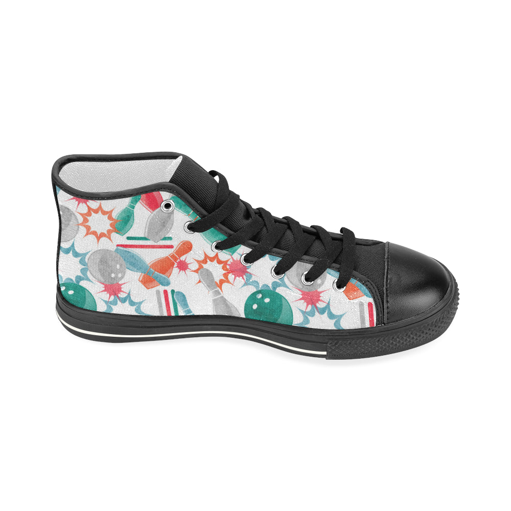 Watercolor bowling pattern Women's High Top Canvas Shoes Black