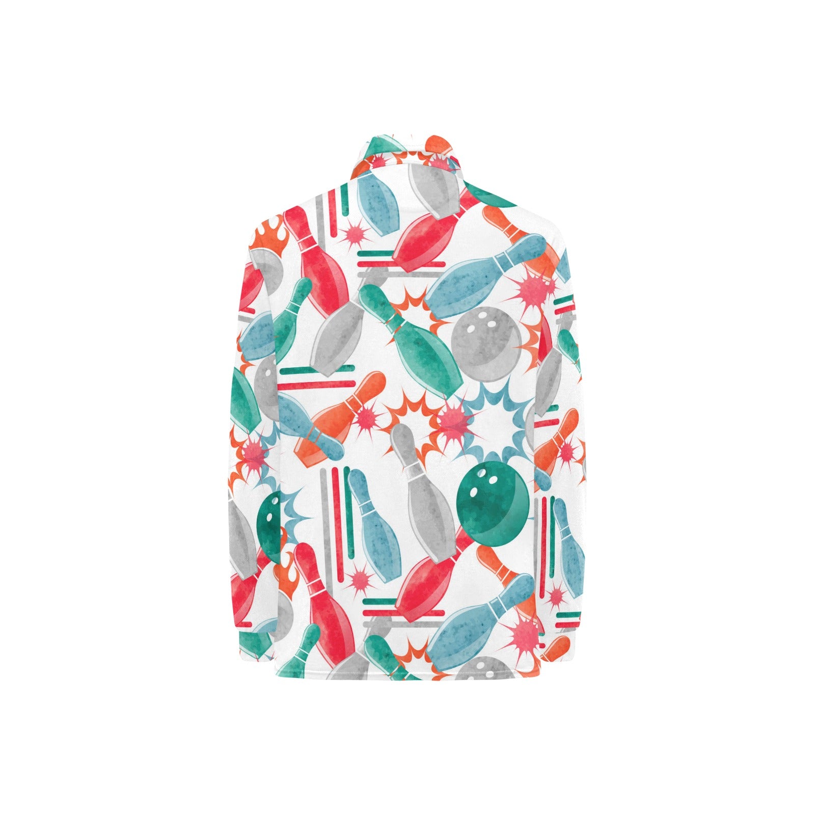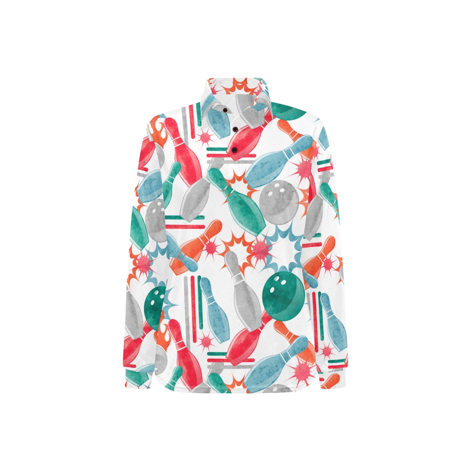 Watercolor bowling pattern Women's Long Sleeve Polo Shirt