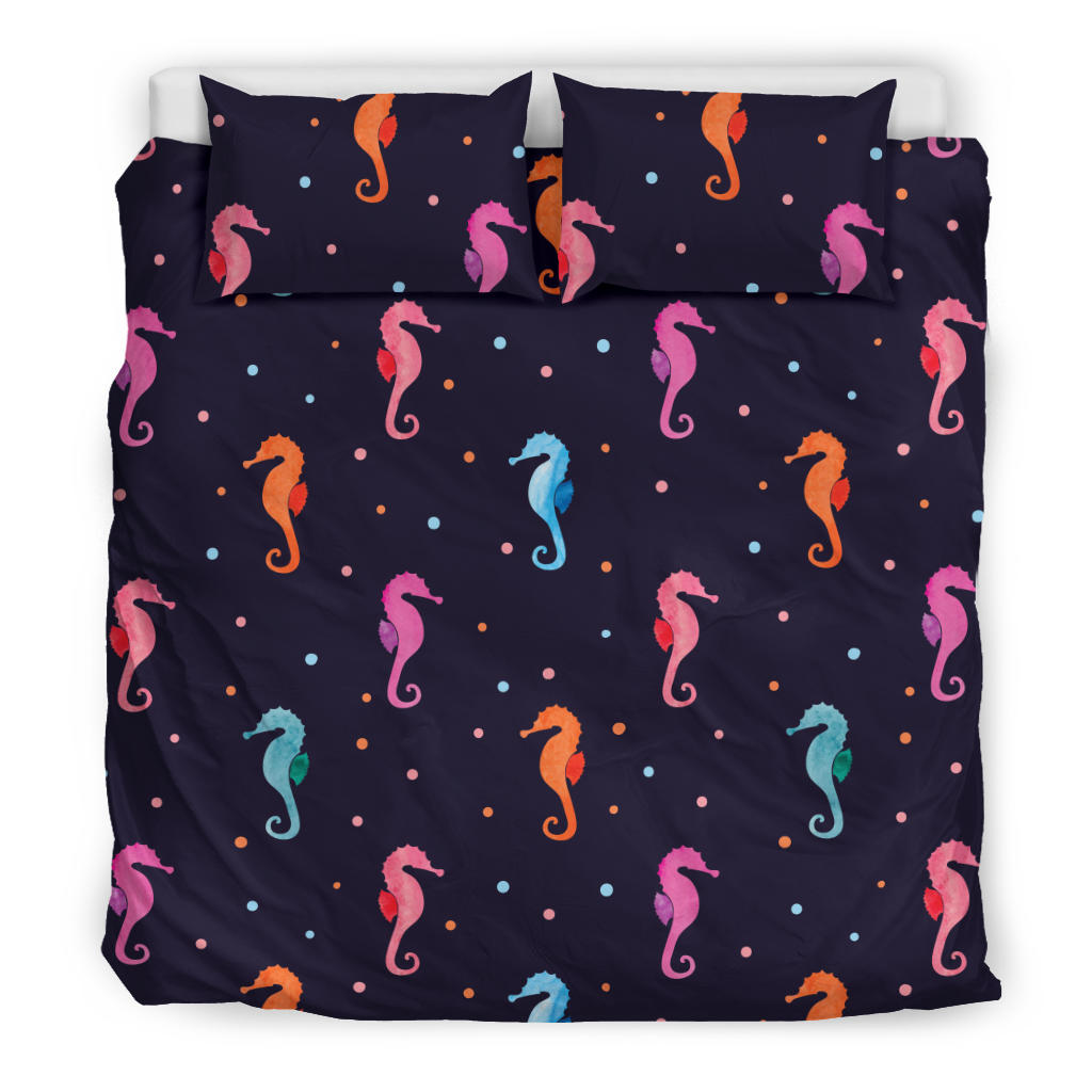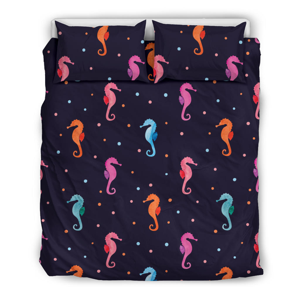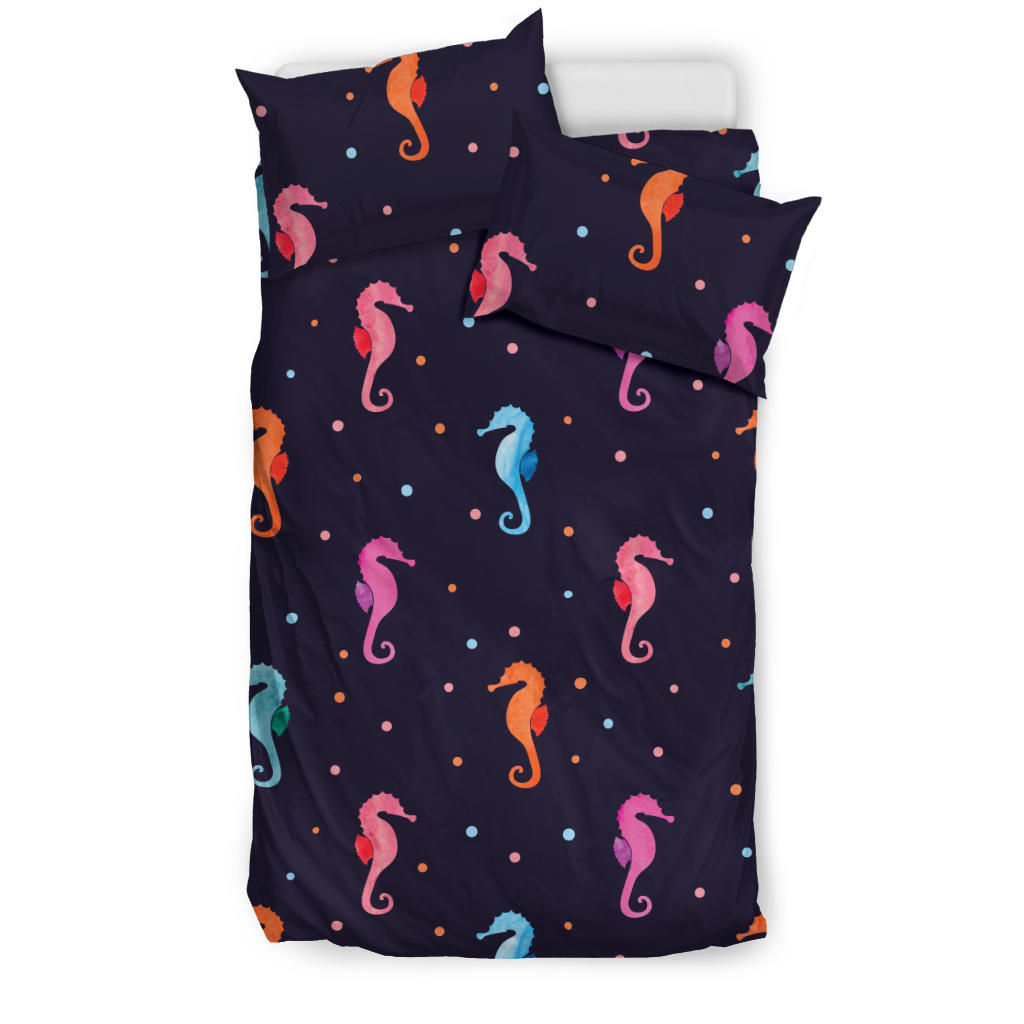 Watercolor colorful seahorse pattern Bedding Set is a uniqued design and limited item. It made to order, hand printed, and sewn with love in our factory.
